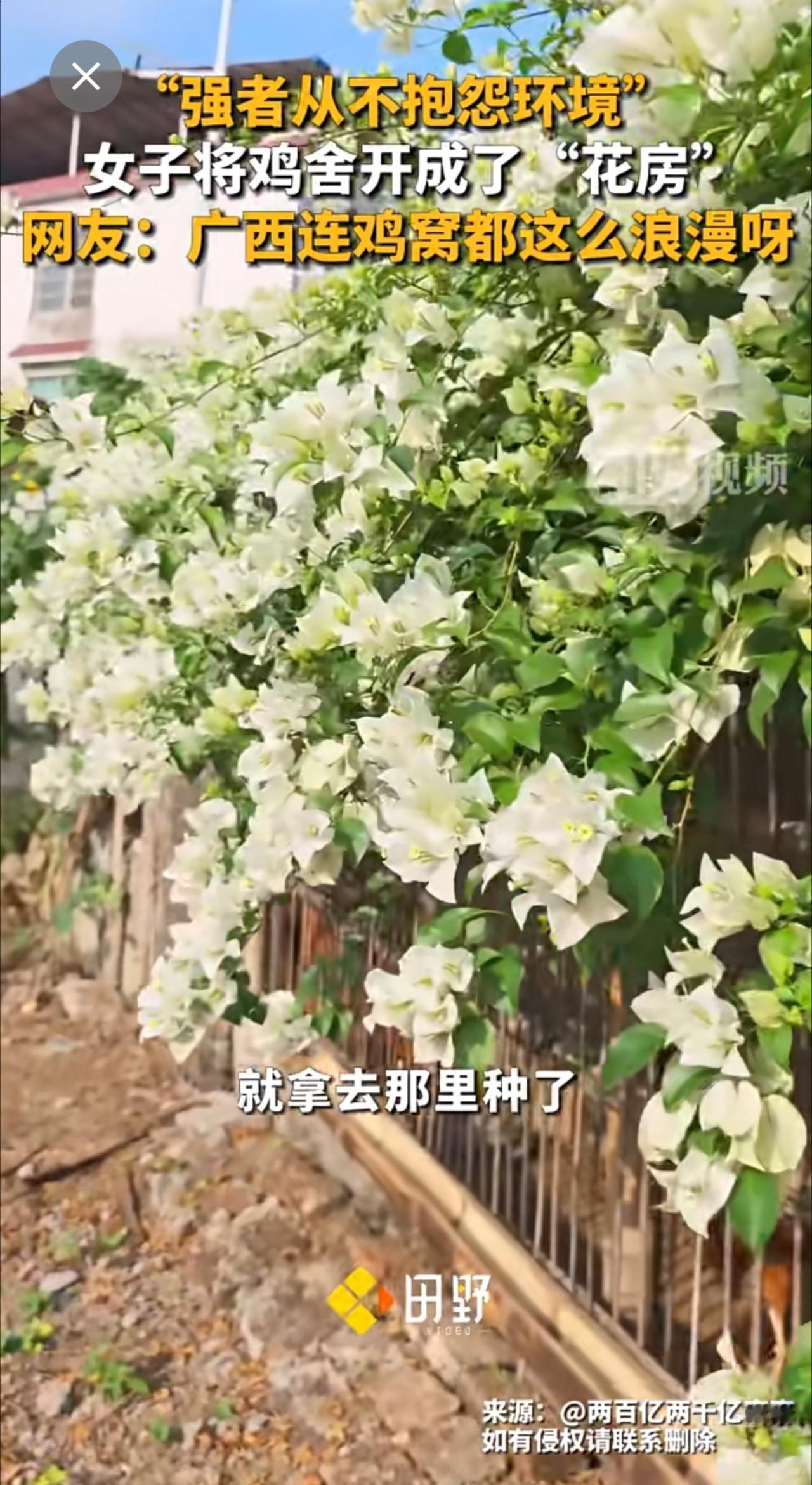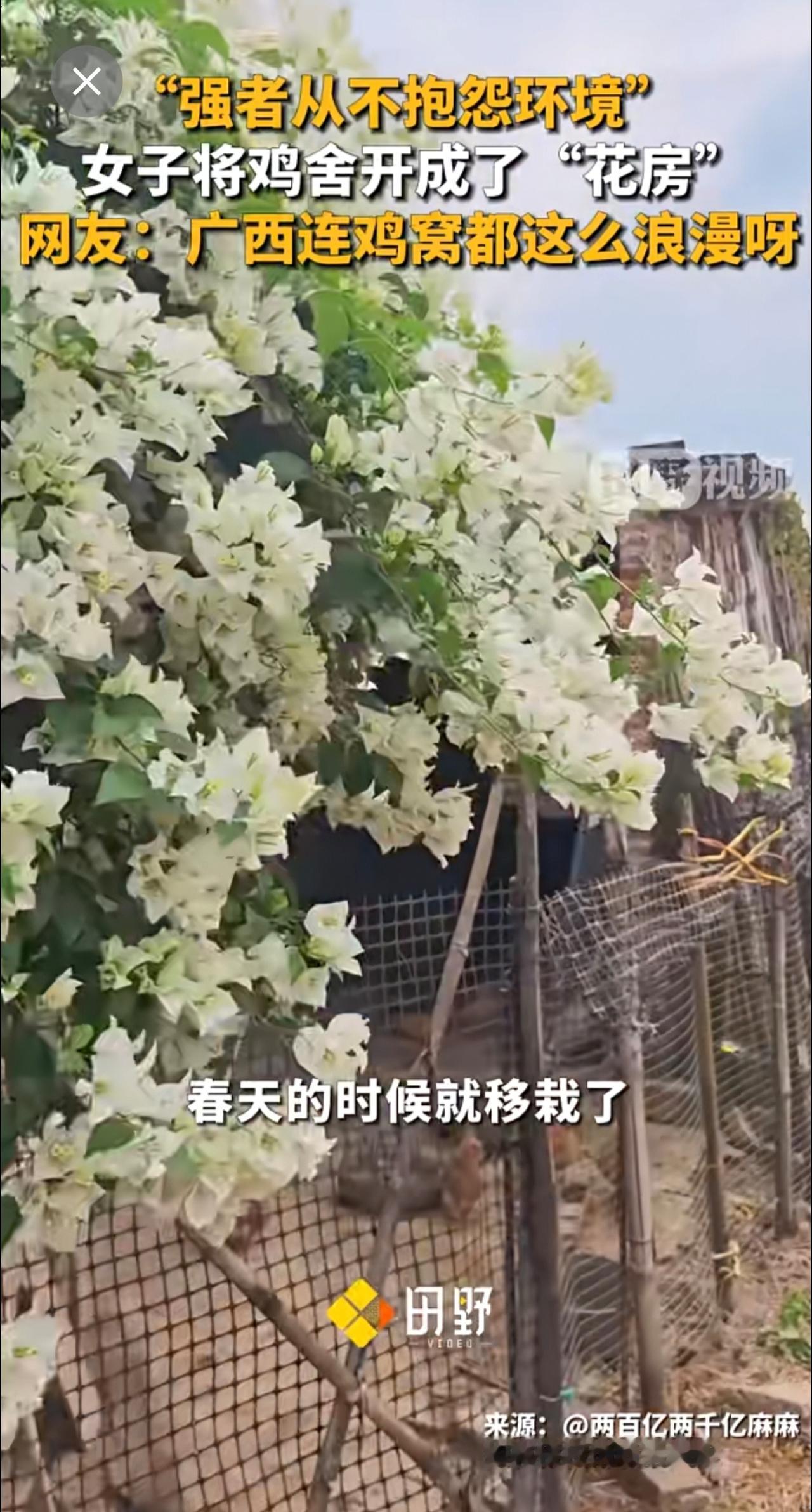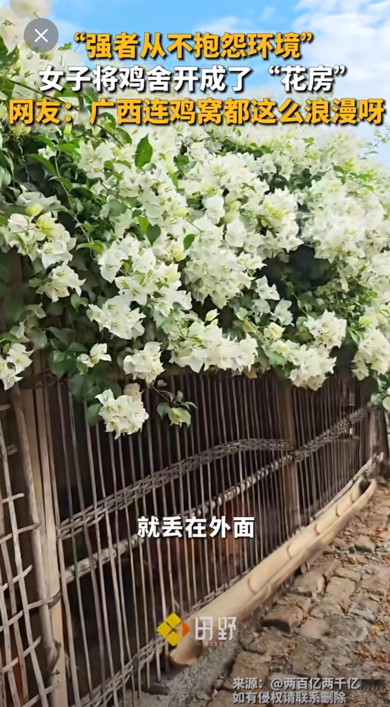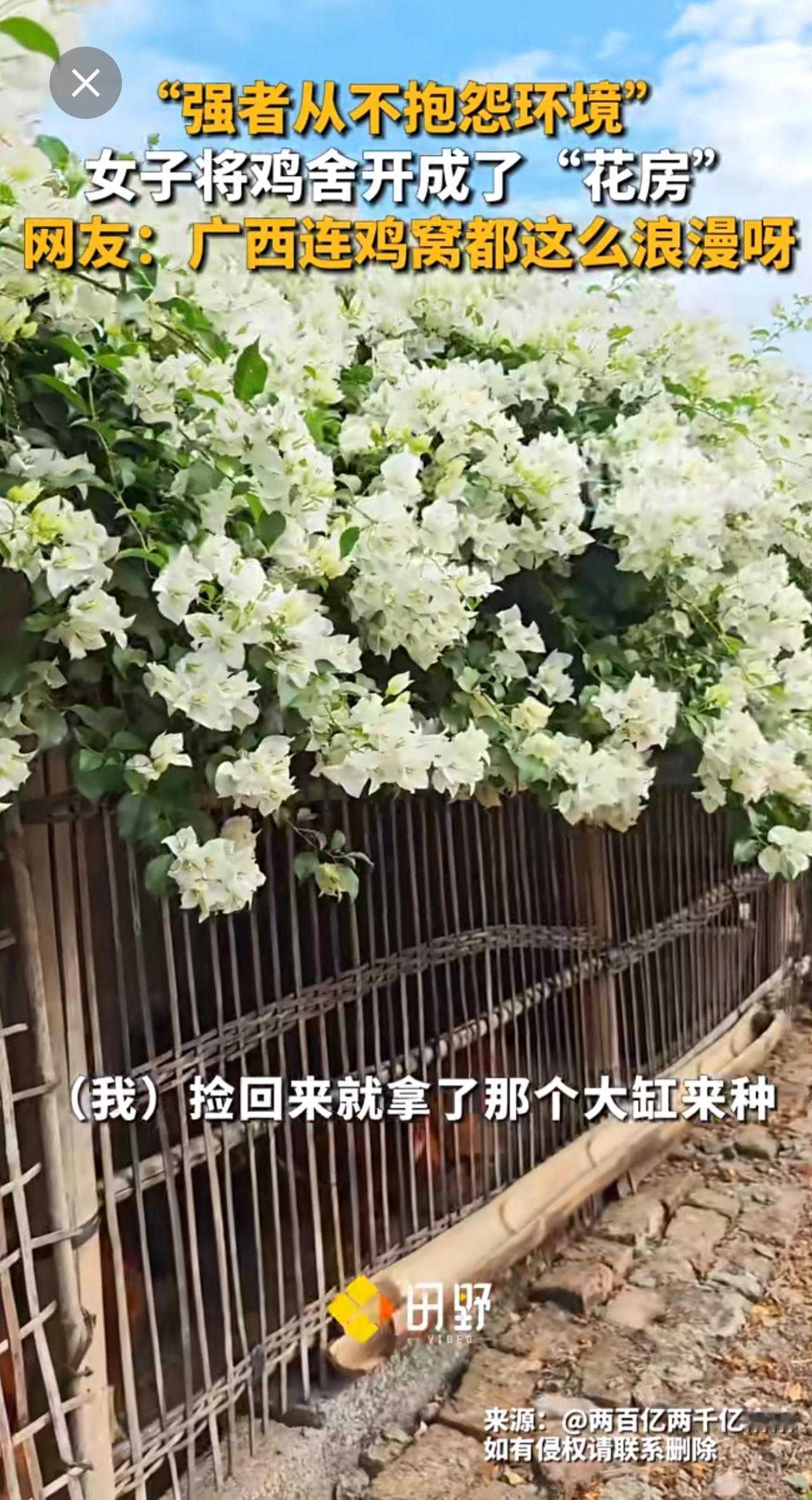 “强者从不抱怨环境” ,女子将鸡舍开成了“花房”,网友:广西连鸡窝都这么浪漫呀。强者从不抱怨环境 种花