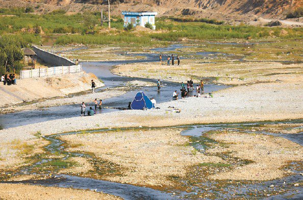 德黑兰民众在几乎干涸的河床内野餐