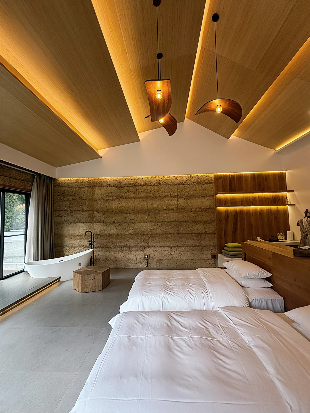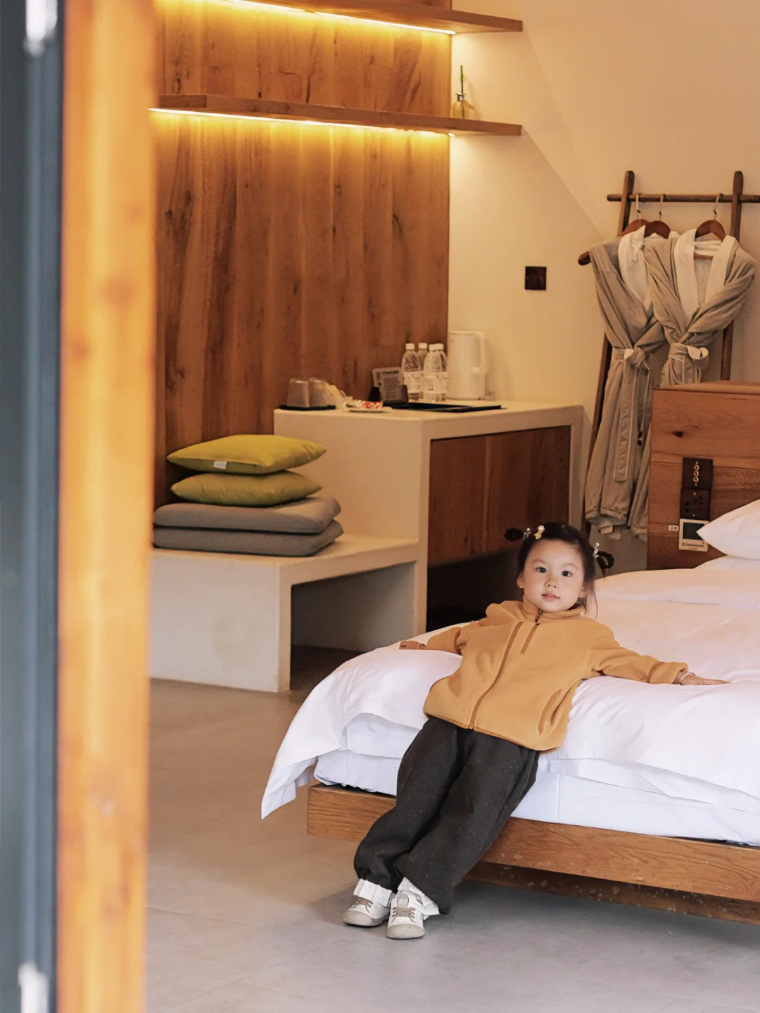 ▪️真的不能躺平‼️因为活动多到数不过来‼️采茶 植物拓印 做香薰 捕鱼 摸鱼 摸鸡蛋 挖红薯 喂动物 坐竹筏 采山楂 捡板栗 泡私汤篝火 KTV 台球… ▪️可以说是我住过的zui适合遛娃‼️不无聊的酒店了‼️ ▪️酒店是在230亩的大农场里 走进去就是竹林 山楂树 茶山 菜园 溪水🎋 ▪️后山有徒步小径 酒店人员开车带我们绕山一圈 深吸一口气 满满的都是草木香 在那一瞬间 焦躁的心顿时沉静了下来[哇R] ▪️我们住的是临水阳台的独栋 很少有房间 宝宝一进门就用漂亮来形容的 [赞R] ▪️父亲拿出他的钓鱼装备 🎣 母亲则坐在边上看电影 宝宝在私汤池里欢快打着水✨ ▪️晚饭后 可以和五湖四海的朋友一起篝火🔥 ▪️原来想要的幸福从来都不复杂 在这样没有天花板的地方 连空气里都飘着 “不慌不忙” 的味道[飞吻R][飞吻R]