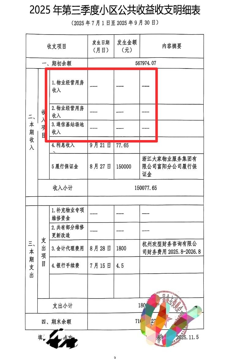 求助: 请懂物业财务管理的条友帮忙看一下,我们小区的这份《小区公共收益收支明细表》是否合理、合规,谢谢!