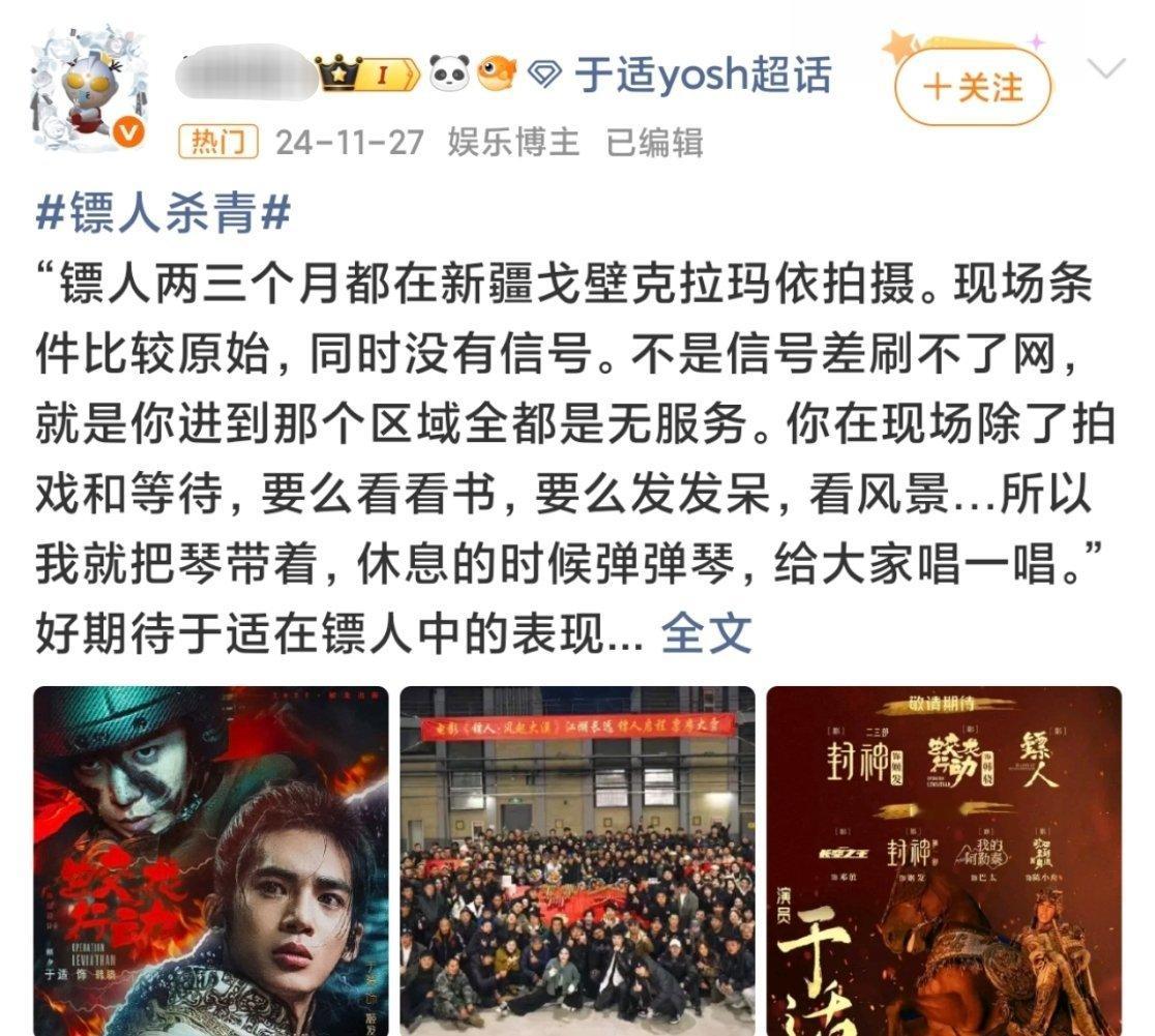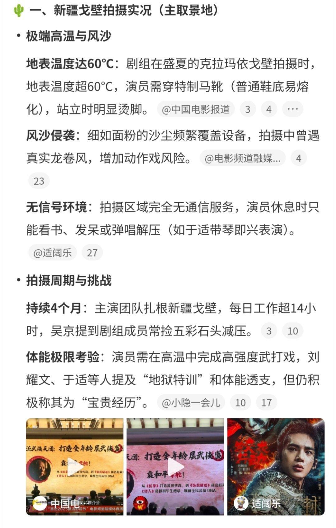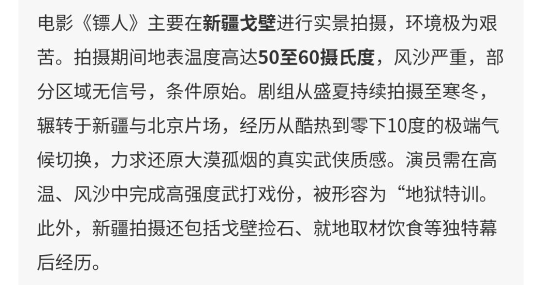 原来《镖人》的拍摄环境这么艰苦,于适在五六十度大风沙的新疆戈壁滩拍了几个月,全都是实景拍摄[作揖]