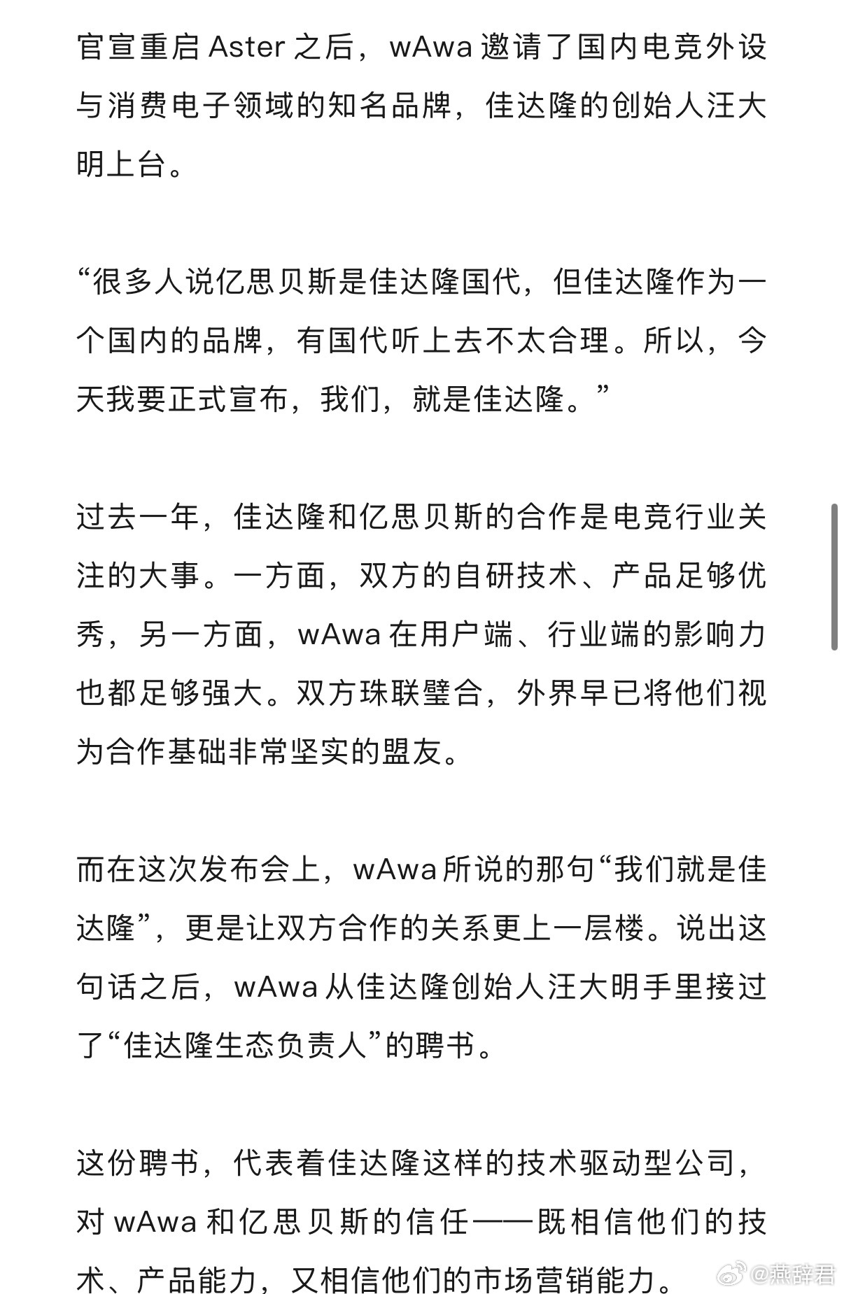 隔壁lol的知名解说wawa入股了Aster,重启战队,但是主攻方向是永劫和CS2