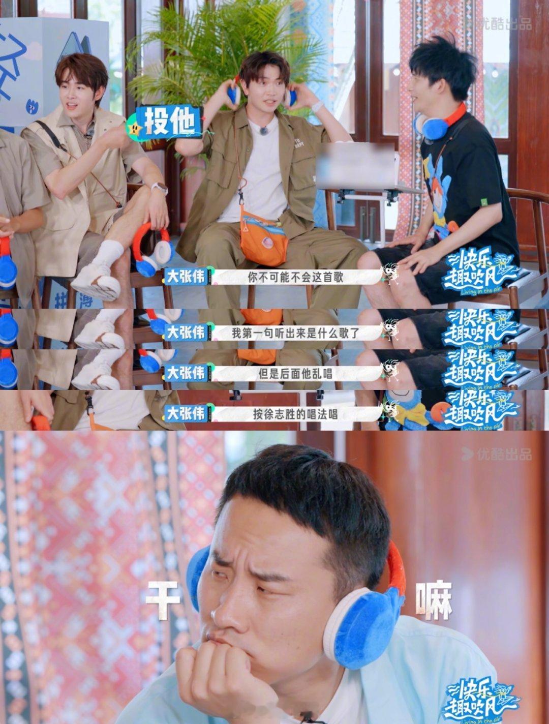 让颜人中做猜歌游戏卧底的人是个天才 给颜人中安排卧底的是懂综艺的!a歌b调里跑调失败,对着大张伟唱到变形,学徐志胜唱腔笑翻,最后自曝真实~快乐趣吹风