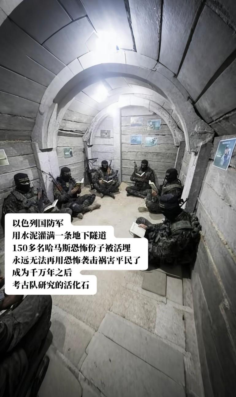 以色列国防军用水泥灌满一条地下隧道,150多名哈马斯恐怖份子被活埋 他们活不到没有实物的时候。洞口堵死缺乏空气和水源,撑不了几天,都撑不到饿死就闷死了。据说里面还有印度兵,好像前年,有相当数量的″印度兵"被闷在里面。