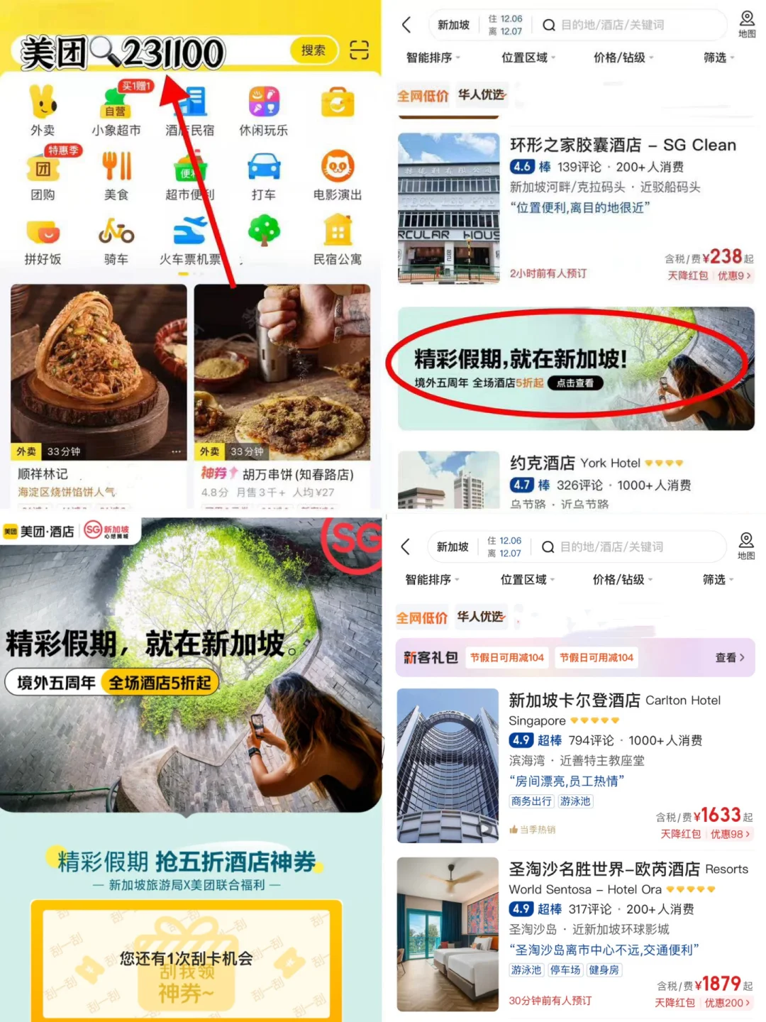 近期美团上线了新加坡酒店的5折的活动,有机会领取到5折券(上限可减200)以上三个酒店都可以使用哦!