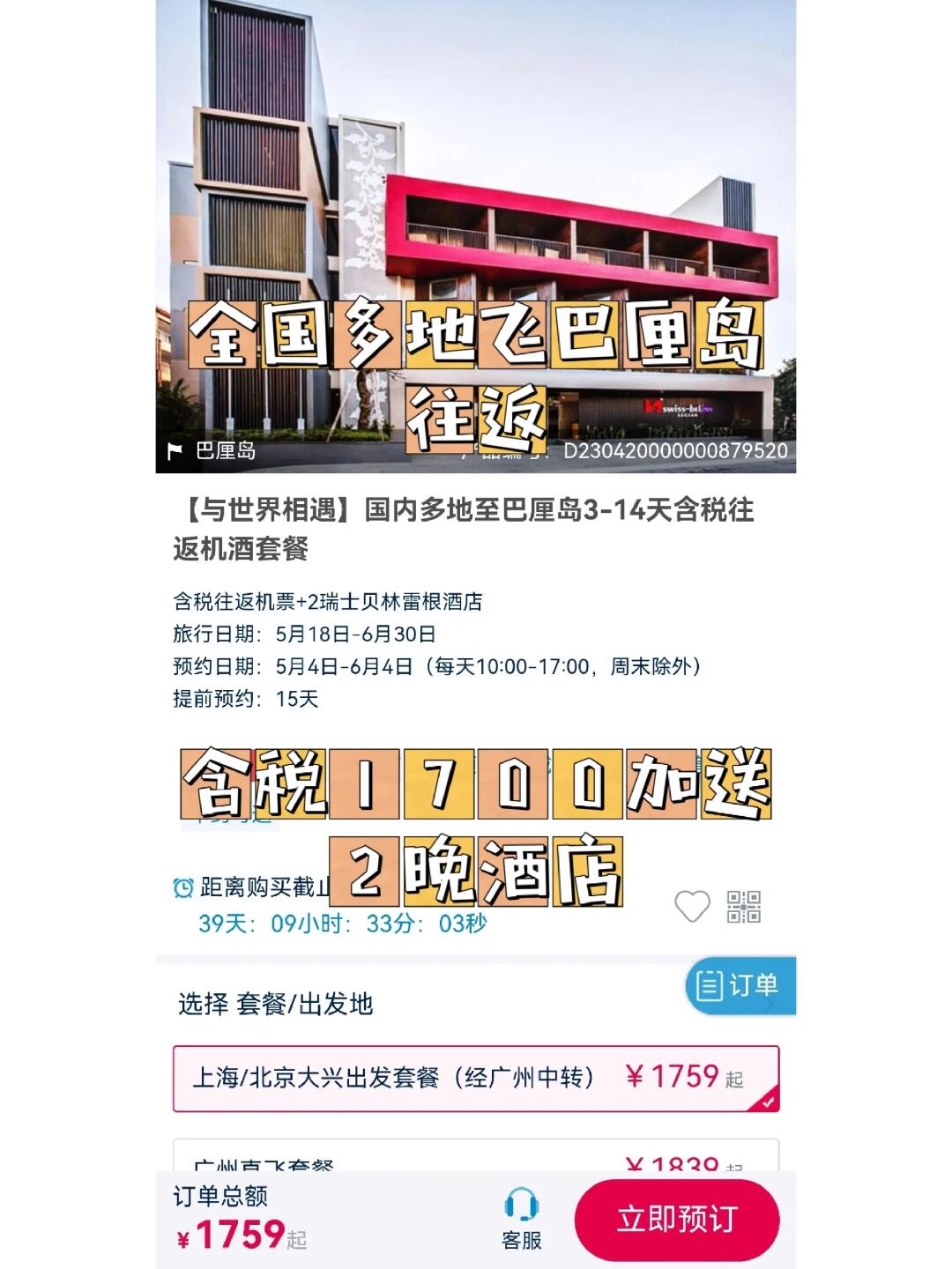 全国多地飞巴厘岛往返机票+2晚住宿只要1700多!