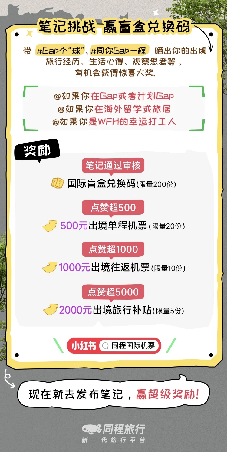 🌈如果你已经准备好了一个假期或已经是Gap一族了,或是留学一族、数字游民一族的话,同程旅行会送出惊喜旅游基金!