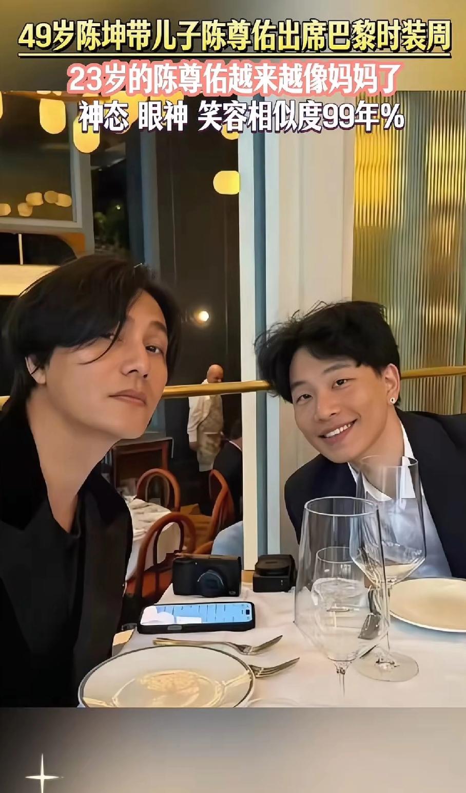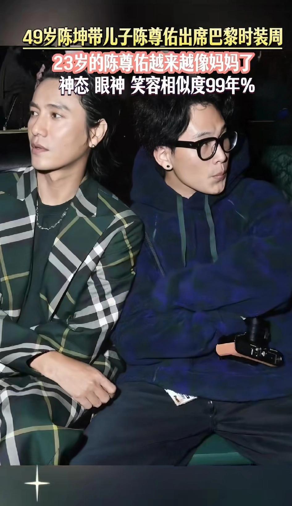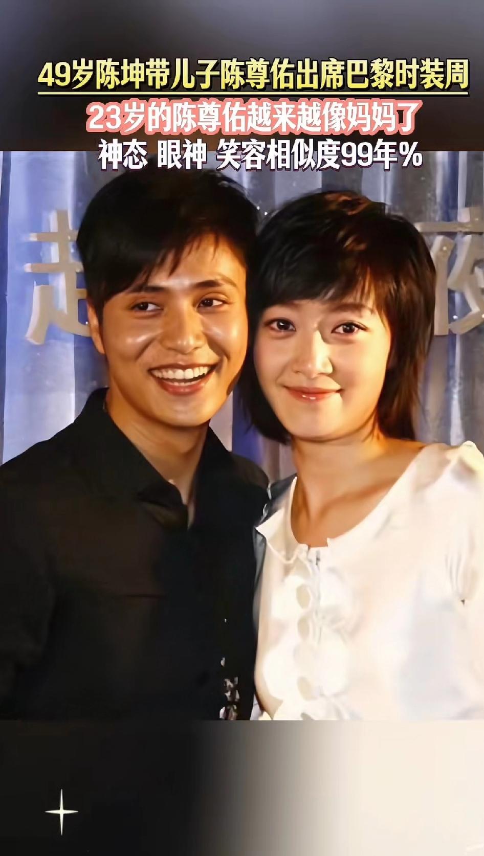 49岁陈坤带儿子陈尊佑出席巴黎时装周,这画面太养眼了。父子俩从容淡定走红毯,陈坤保养得那叫一个好,和儿子走一块就像同龄人,少年感十足。 陈尊佑虽然不在娱乐圈,但一直有他的传说。陈坤早期出于保护心理,没让儿子出现在镜头前,现在孩子大了,就常带他出席活动,当爹的很尽责。 每次陈坤和儿子同框照一公布,网上就掀起猜测陈尊佑生母身份的热潮。 有人说孩子像何琳,可双方都没回应,这至今仍是未解之谜。 80后认识陈坤的还是从《像雾像雨又像风》这部电视剧里对他印象深刻。 剧里面的“周迅”扮演“杜心雨”梳着两个马尾辫,眼神清澈见底,一发不可收拾的爱上了修表匠! 可惜最后陈坤扮演的修表匠“阿坤” 一直都忘不了初恋“方子怡” 最后被杜心雨的父亲一枪给打死了。 这部剧的结局是死的死疯的疯,还记得小伙伴们在一起讨论时,感觉结局都不好,不像看前面剧情时那样兴奋。