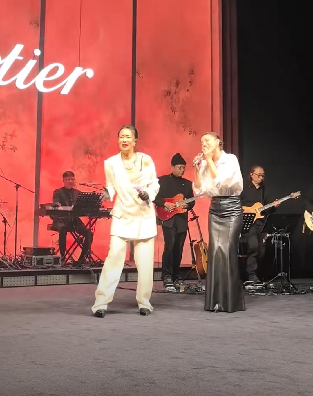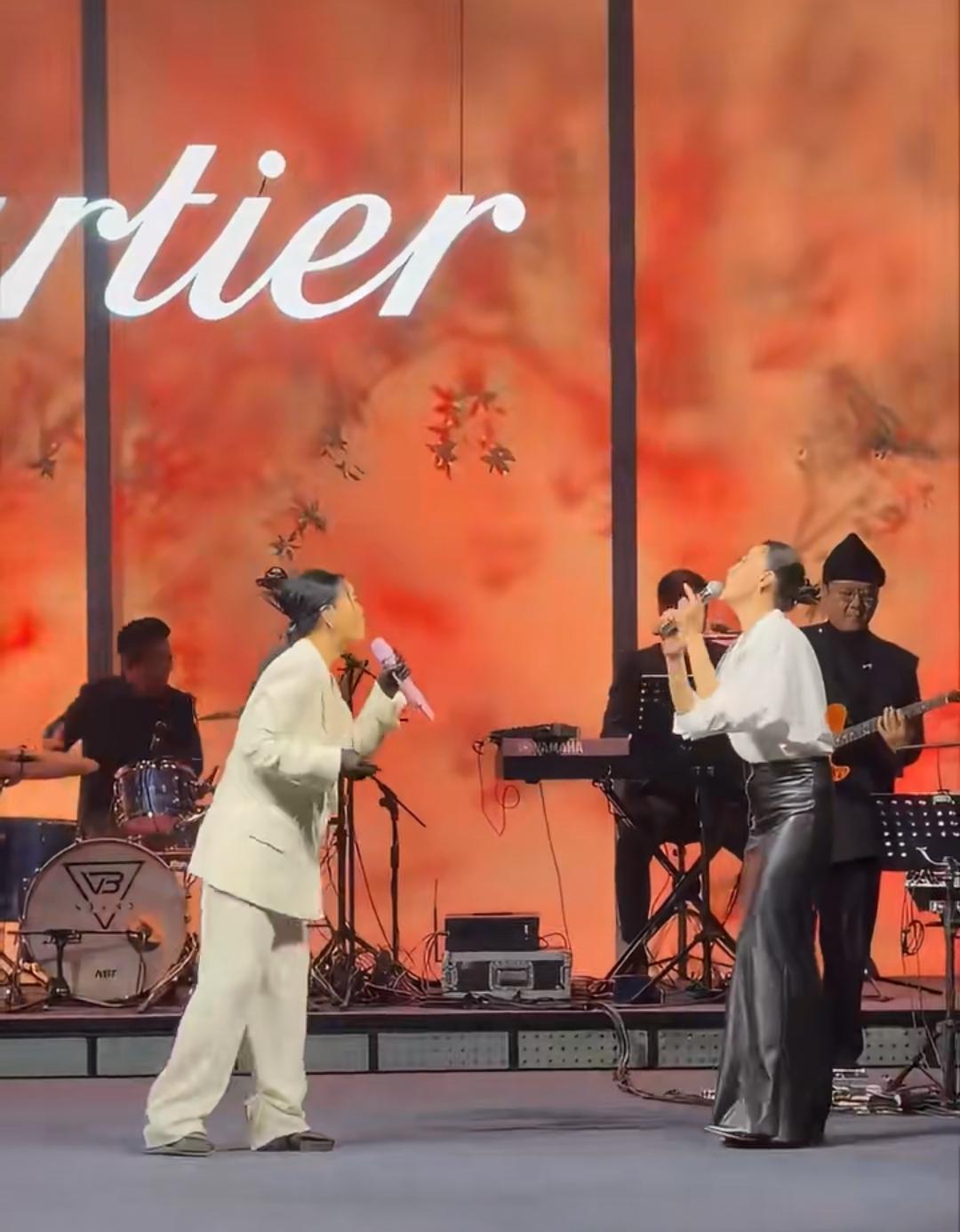 笑疯!卡地亚晚宴名场面预定!那英台上开唱,宋佳和朱珠在台下当气氛组嗨到不行。结果那英一个“点将”,直接把宋佳拽上台合唱《一笑而过》! 本以为是神仙同框,没想到那英猝不及防升key飙和声,妥妥的“温柔陷害”!谁料宋佳稳如老狗,神级救场接住所有高音,两人互飙超带劲!连一旁的巩俐都忍不住笑出画面,这波相爱相杀的名场面,我能循环播放一百遍!
