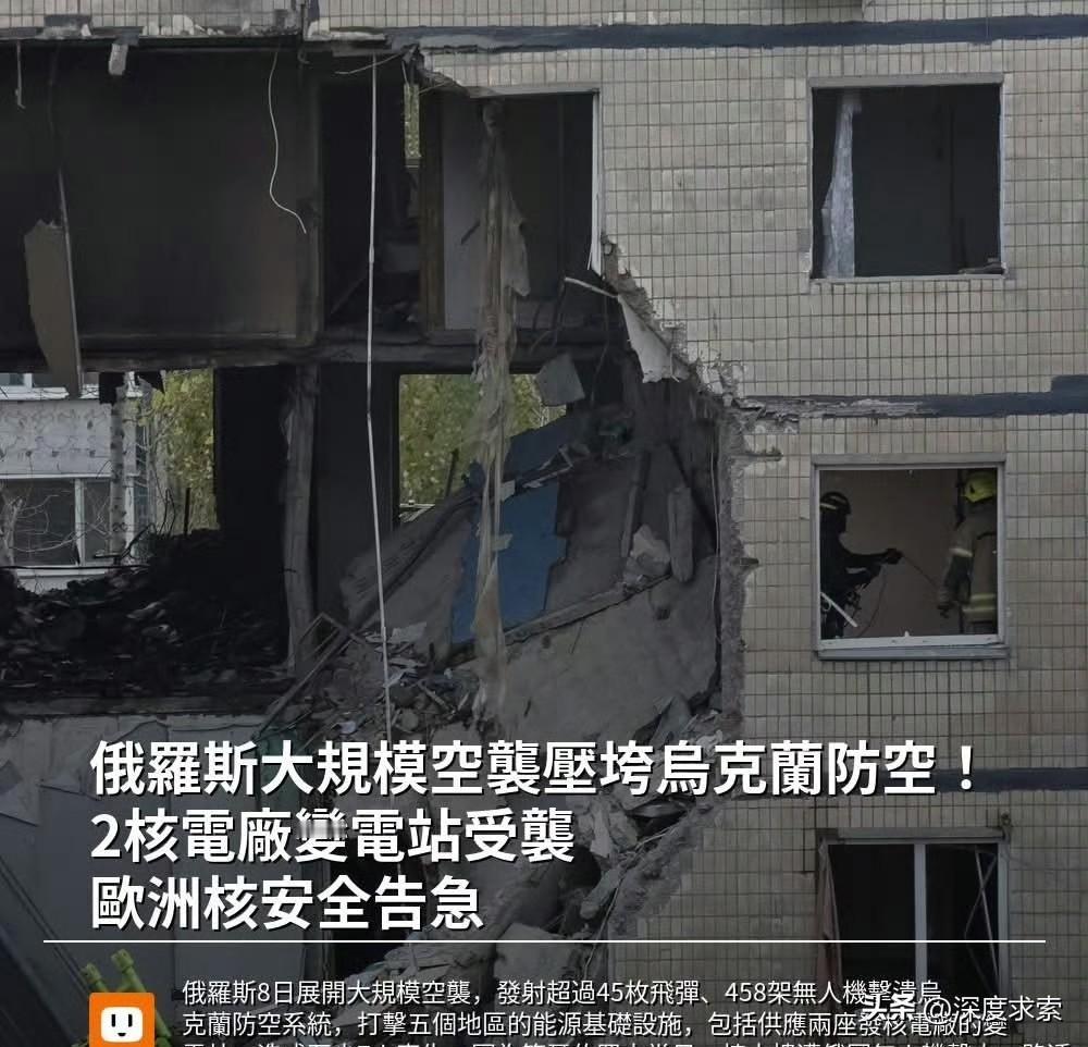 乌克兰谴责俄罗斯威胁欧洲核安全! 英国金融时报报导,俄罗斯8日展开大规模空袭,发射超过45枚弹道导弹、458架无人机击溃乌克兰防空系统,打击五个地区的能源基础设施,包括供应两座发核电厂的变电站,造成至少7人丧生,基辅谴责莫斯科蓄意危害欧洲核安全。 乌克兰外交部长西比哈在X发文证实,位于赫梅尼茨基(Khmelnitsky)与瑞夫尼(Rivne)的核电场变电站「遭遇精心策画的攻击」,谴责俄罗斯「蓄意危害欧洲核安全」。 乌克兰称击落406架无人机与仅9枚导弹。金融时报报导指出,由于俄罗斯弹道飞弹升级,加上乌克兰武器库中先进防空系统数量有限,导致拦截率大幅下降。 西比哈呼吁国际原子能总署(IAEA)理事会召开紧急会议,并敦促「所有重视核安全的国家,特别是中国与印度,要求俄罗斯停止对核能设施的鲁莽攻击,以免酿成灾难性事故」。 乌克兰总理斯维里登科透露,基辅、波塔瓦与哈尔科夫等地能源设施受损,造成上千人断电断水,目前正在积极抢修。