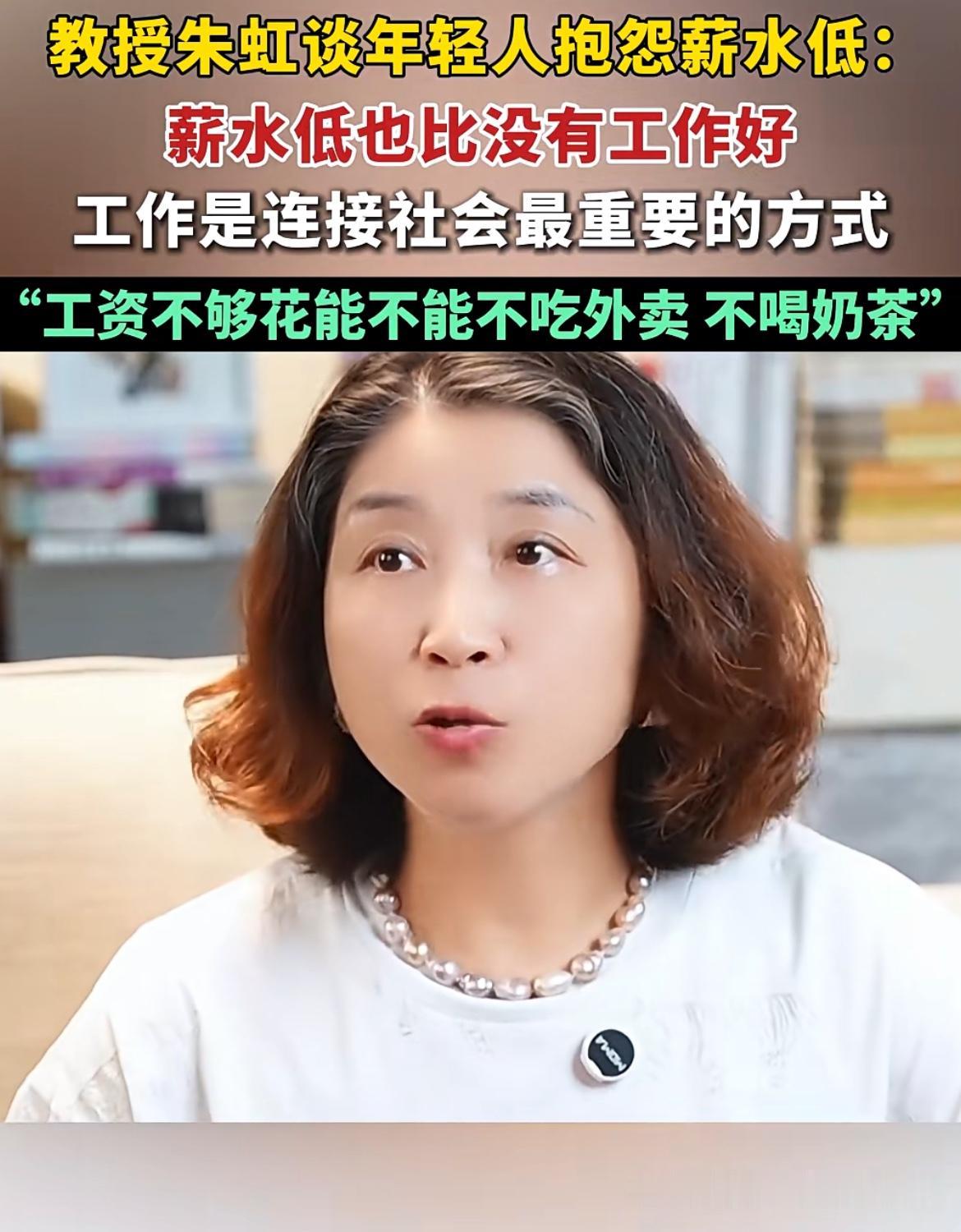 朱虹教授说年轻人动不动就抱怨薪水低是因为眼光太高,薪水低都比没有工作好,工资不够花就不要吃外卖和喝奶茶 既然如此,那你就起带头作用先把自己的工资降到3000再来说教,一份工作如果连一杯奶茶都买不起的话,那为什么还要给资本当牛做马