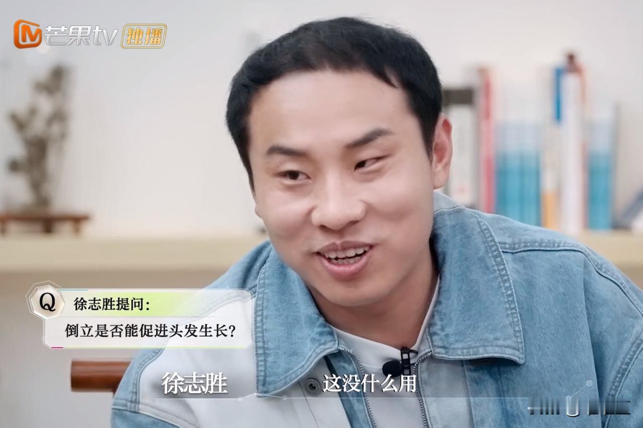 饱受脱发困扰的徐志胜问中医:“我大学时听说脱发说因为头部血液不流通,为了促进,我就倒立。”王敬轩都吃惊了,忍不住问:“真的还是假的啊?”徐志胜笑着承认:“真的。” 徐志胜转头问中医:“这有用吗?”中医反问一句:“你当时觉得呢?” 徐志胜笑了,有点尴尬地说:“没啥用,还天天头晕。” 这画面光是想想就够搞笑了 —— 一个脑袋快 “秃” 的大学生,每天把自己脑袋朝下扎,双手撑着地,脸憋得通红,心里还盼着 “血液赶紧流到头皮,头发快长”,结果头发没等来,先等来一阵天旋地转,可能站起时还得扶着墙缓半天。 但其实也能理解徐志胜的“病急乱投医” 的,他在脱口秀里就说过,每次洗头看到排水口的头发,都得蹲下来数 “今天又掉了多少”;出门必戴帽子,生怕风一吹露出发缝;连朋友开玩笑说 “你头发好像又少了”,他都得回家对着镜子扒拉半天。这种焦虑下,“倒立促循环” 这种听着像 “玄学” 的说法,居然也成了救命稻草 —— 毕竟 “万一有用呢”,总比眼睁睁看着头发掉强。 可中医一句话就戳破了误区:脱发哪是 “倒立就能治” 的?遗传、压力、熬夜、内分泌失调,哪一个都比 “血液不流通” 更关键。