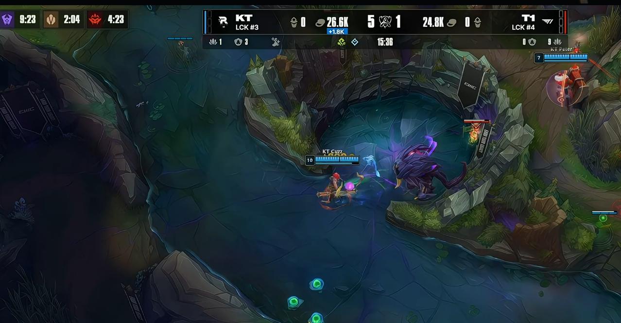 英雄联盟总决赛KT这把真的起飞了,直到现在为止,经济全吃了,龙也吃了,河蟹也吃了,人头领先,经济领先,而小龙马上又要刷新了,如果下一条小龙。T1再不拿,这把估计要恭喜KT了。那么李哥,能不能再次带飞呢?