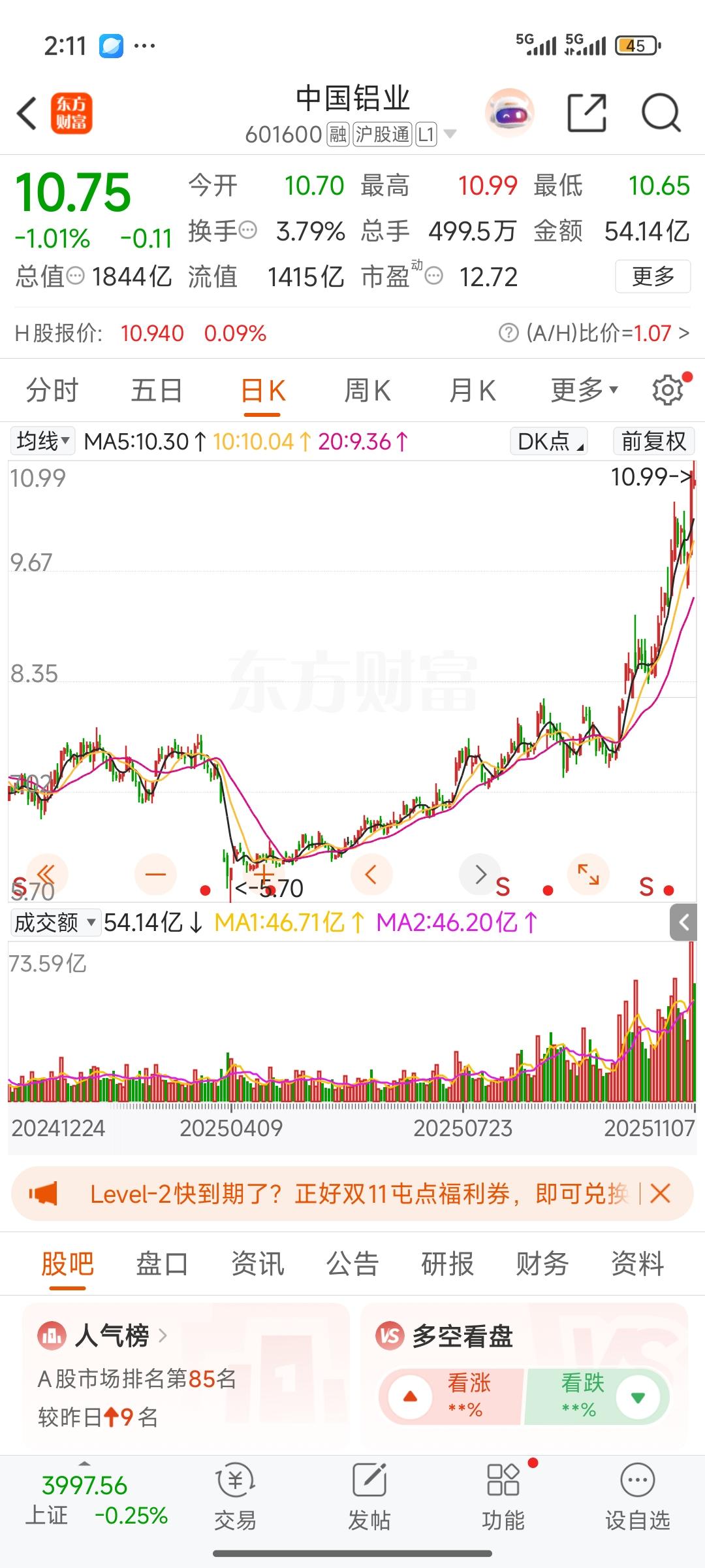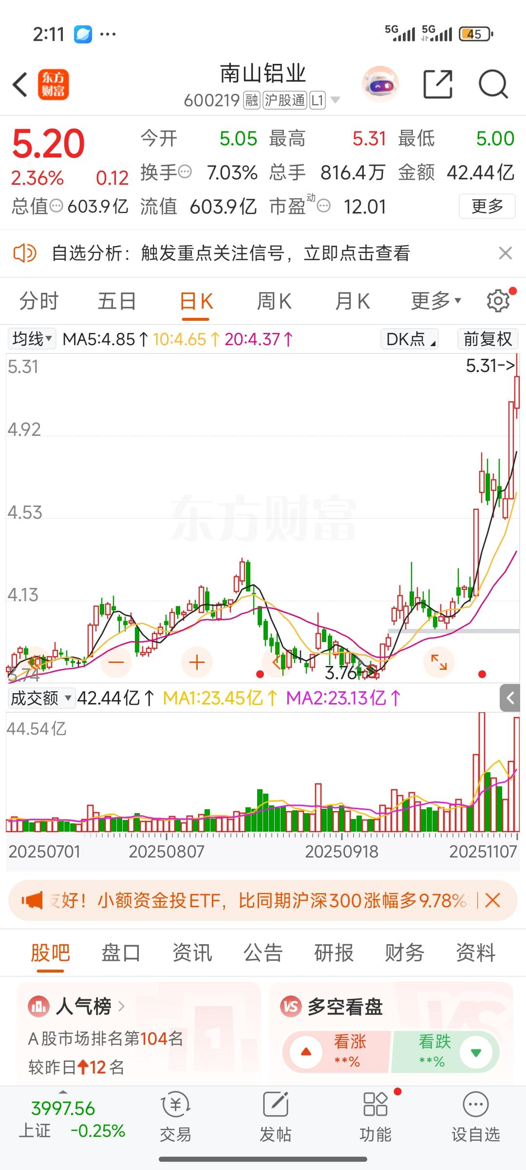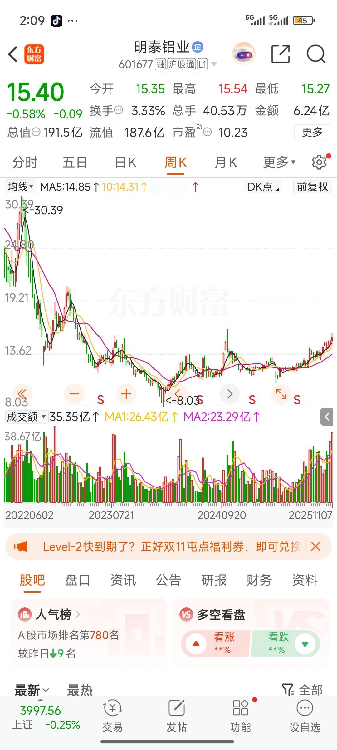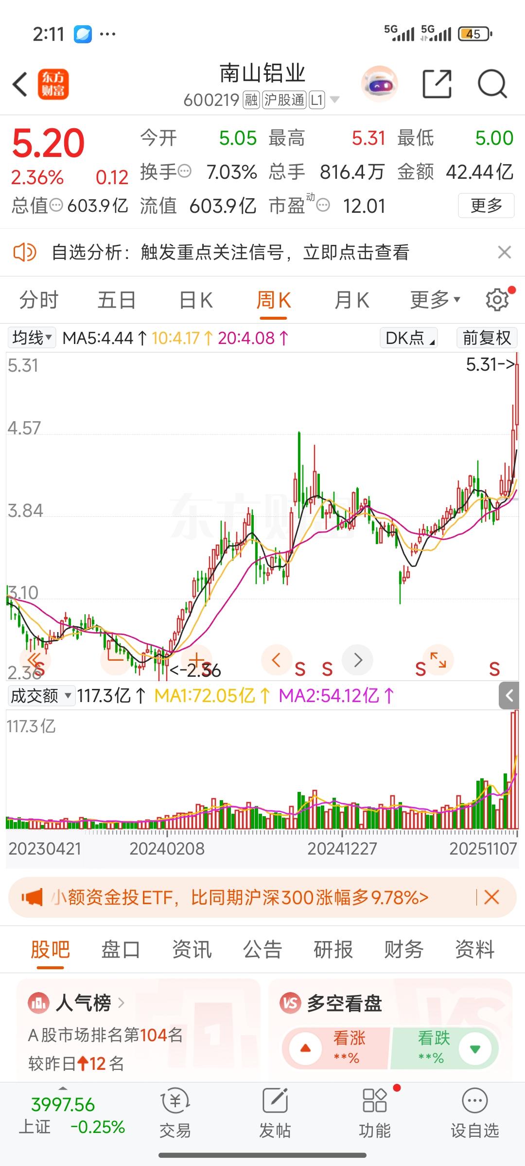 周末复盘发现啊,铝业股,很多的铝业股都在走上升通道,同时也注意到上周四啊铝业股集体暴动,多个铝业股涨停啊。 那么铝业股票它的上涨逻辑是什么呢? 一个就是我们在前面炒的是美元降息周期下的资源涨价,前面黄金已经炒过了,然后炒银,再接着炒铜,那么会逐渐蔓延到铝啊这些其他的金属上,总的这个逻辑是一样的,就是资源涨价的概念, 其次铝啊它实际上在工业应用上也是非常广泛的,而且呢越来越多的随着铜的涨价越来越多的替代到铜。替代铜用在比如新能源汽车啊,风电啊、光伏啊,新式的。以及家庭装修上啊,铝都是不可或缺的,所以说需求需求量也会在逐渐上升,那么它用量大也会带来的这个业绩的提升。 仔细看看呢,这个铝企业铝的企业a股上市公司开始启动上升通道,但目前涨幅不大。我们可以从中关注起来,感觉铝的a股上市公司的股票啊,还有非常高的一个投资价值。那么在这么多铝业公司上,大家会更看好哪一支铝业公司的股票,或者说哪一支铝业公司的股票,它上涨潜力更大呢?铝业行情 铝业产业链 国企铝业 铝业市场 新疆铝业 银冠铝业 安徽铝业