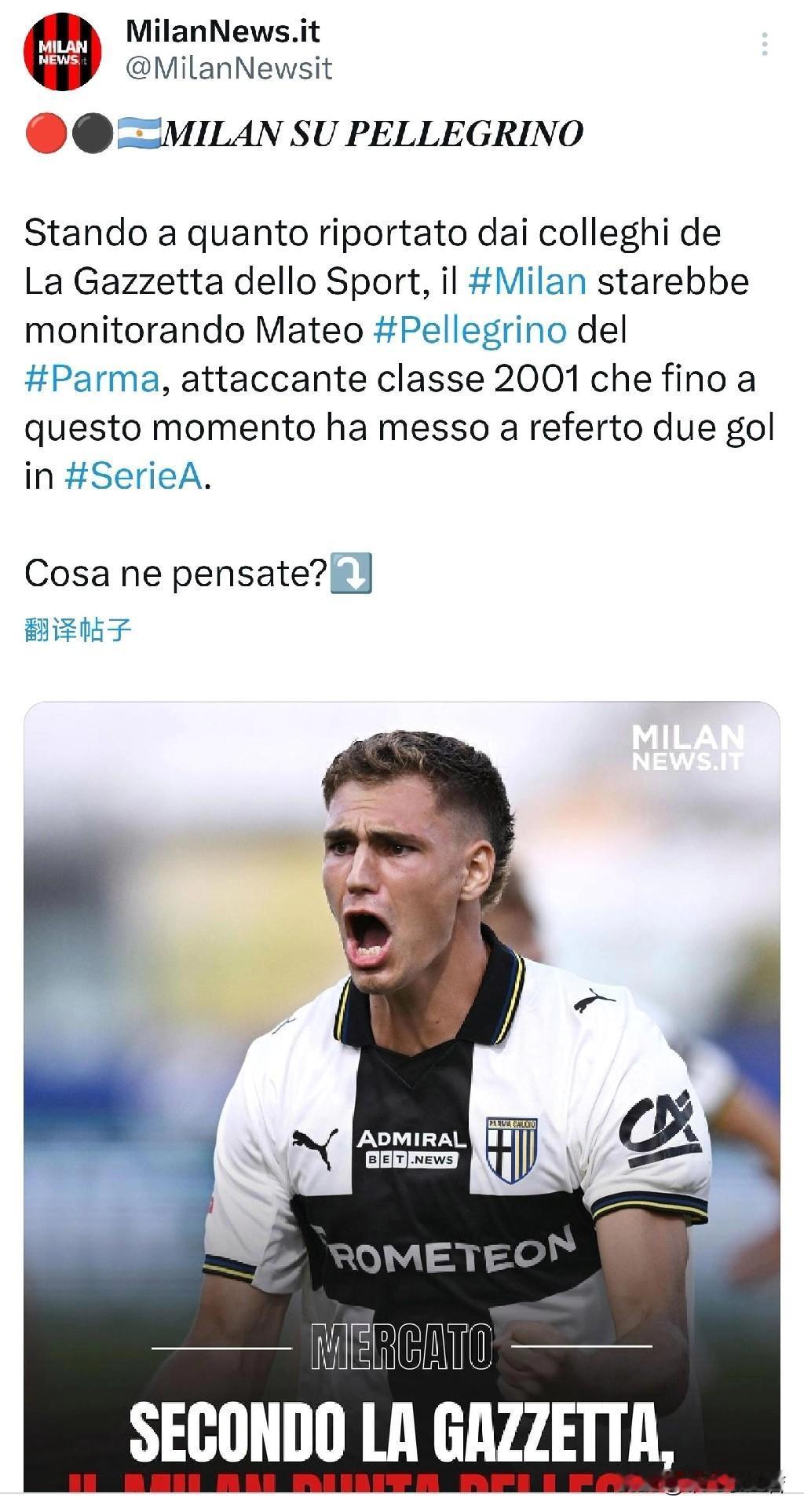 普拉托!当选米兰与帕尔马之战全场最佳的普拉托是米兰重点关注的球员,除了普拉托帕尔马守门员铃木彩艳和前锋佩莱格里诺。这是准备挖帕尔马一条中轴线?帕尔马貌似就是保级队水平,前锋佩莱格里诺也就算了,确实有点实力,但真的不多,剩下的奥这这和普拉托到底看上啥了。 帕尔马这个阿根廷前锋佩莱格里诺最近传的挺厉害,他的技术类型确实符合阿莱格里需求,算是中锋里面性价比比较高的球员,德转不到600万欧元,差不多一千多万的价格就买入,他应该是那个斯特拉斯堡阿根廷前锋的替代者,那个据说要价高于4000万。 铃木彩艳被很多人称为奥这这,大家觉得这个名字是褒义的?不理解为啥从去年他就与米兰消息不断,去年冬季窗口和夏季窗口他的经纪人都到过米兰之家,去年冬季窗口时候铃木彩艳还不叫奥这这,但很多人都质疑米兰的选择,同样普拉托也一样,没有任何亮点的球员,我们转会不能永远盯着这样的球员。