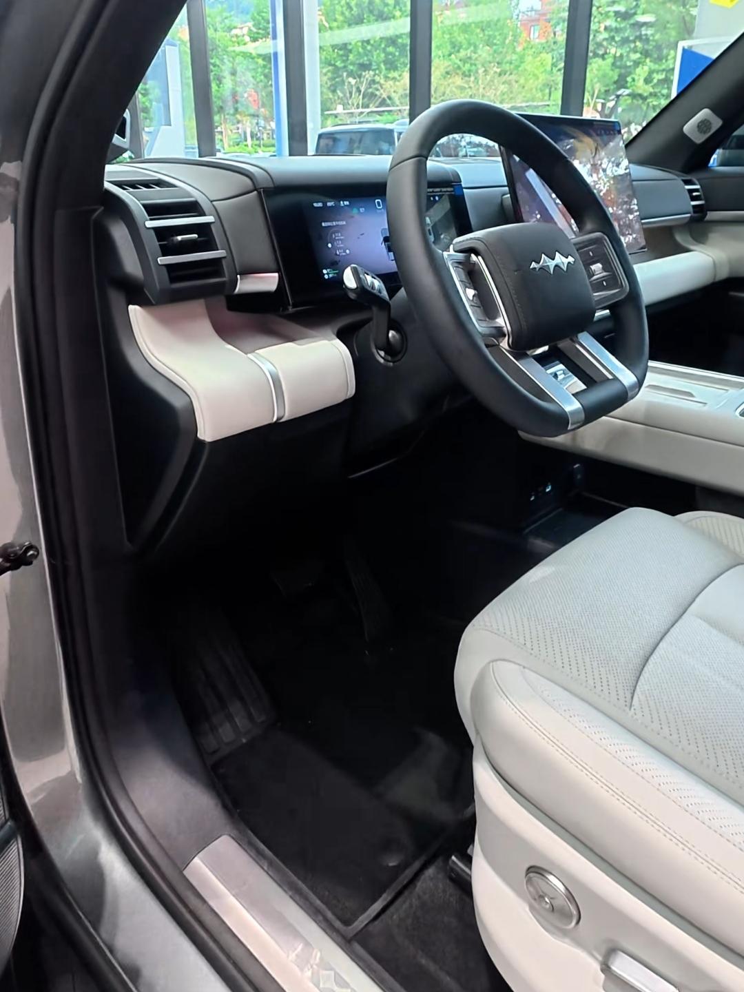 同学最近想换电车,来接我陪他一起去转转。因为同学这次换车打算试试新能源,没有准确的目标,所有看的品牌和车型比较杂乱。给我印象比较深的还是方程豹里钛7这个车。每次看都有不一样的感受: 1️⃣外观: ❤️喜欢: 这台车的前脸我是百看不厌呀,横平竖直的线条设计,熏黑前的前脸和大灯直接融为一体,拉宽整体视角,下面凸出的银色保险杠非常霸气,给人一种非常有力量的感觉。车头饱满,高度能到我肚子上面的位置。非常大气的一台硬派车型。 💔不喜欢: 之前看这台车就感觉CD柱和车尾有点说不出的感觉,今天一起看了这个地方,终于看明白了。从后车门到车尾玻璃被分成了四块区域,感觉有些复杂和杂乱;车尾小书包位置偏低,再高一些我觉得气质会更棒。车身整体姿态没有豹5高,气场稍逊一点。 2️⃣内饰: 这次再坐进车里,感受有了不一样的变化,接下来是我对这台车内饰的评价: ✅同样先说优点: ❤️优点①:硬抗霸气 首先是这个方向盘,两侧按键做的面积非常大,四四方方的,看上去就非常硬派。其次是仪表台下面这个即是储物又是扶手的大凹槽,这次感觉这个东西还挺不错的,果然人的看法是会变的。 ❤️优点②:配置高 无钥匙进入,自动大灯,智能辅助驾驶,智能车机大屏,座椅加热通风按摩,冰箱,抬头显示,手机无线充电,后排座椅加热,全景天窗,方向盘加热,副驾腿拖,双层夹胶隔音玻璃。基本上入门就是高配。 ❤️优点③:空间够用 这台车虽然有五米,但空间应该去掉小书包按照四米八的尺寸再说,我们一行人,驾驶位1米8,我175在后排,腿部还能有两拳空间,这个公间虽不能说是富裕,但还算够用。再就是后备箱储物空间比较大,放几个大行李箱完全没问题,而且小书包里还可以再放点零散的小件物品。 ❎再说说缺点: 💔缺点①:后排线条复杂 坐在后排,前排座椅靠背上的线条和储物兜线条太多,看上去有些杂乱,还有就是后排出风口,上中下分成了三部分,整体感觉就是有些乱。 💔缺点②:后备箱高 打开后备箱门以后,还有十几公分的高度才是够到后备箱的平台。这个高度对于一般男性来说也不算低了。如果是操作一些大件会更费力。其次就是这个后门箱开门方式不如直接搞一个大把手来的霸气。 💔缺点③:小书包不好关 这个小书包确实可以放点小东西,但关上的时候一开始没有掌握方法,关了几下都没关上。原因是必须用手从中间推,直接按锁扣的位置。我觉得出现这个问题的原因应该是小书包盖板比较软,从侧面用不上力。 3️⃣配置选择: 如果让我推荐,我要么推荐两驱高配,要么四驱高配,这两个配置的价格,能接受那个选哪个。 原因很简单,两驱高配巡航更长,有200公里,不用频繁的去充电,这点绝对是插混车中最重要的一点。 而四驱高配的原因是贵出的价格给了对应的配置,而且有选择随车无人机的资格,适合自驾旅游爱好者(预算有限四驱入门也完全够用) 📖总结归纳: 方程豹钛7是一款没有大梁的方盒子城市SUV。不能拿它去和越野车去比机械素质,但如果就是日常家用通勤,能喜欢接受这个造型,这台车还是非常不错的。【来自懂车帝车友圈】