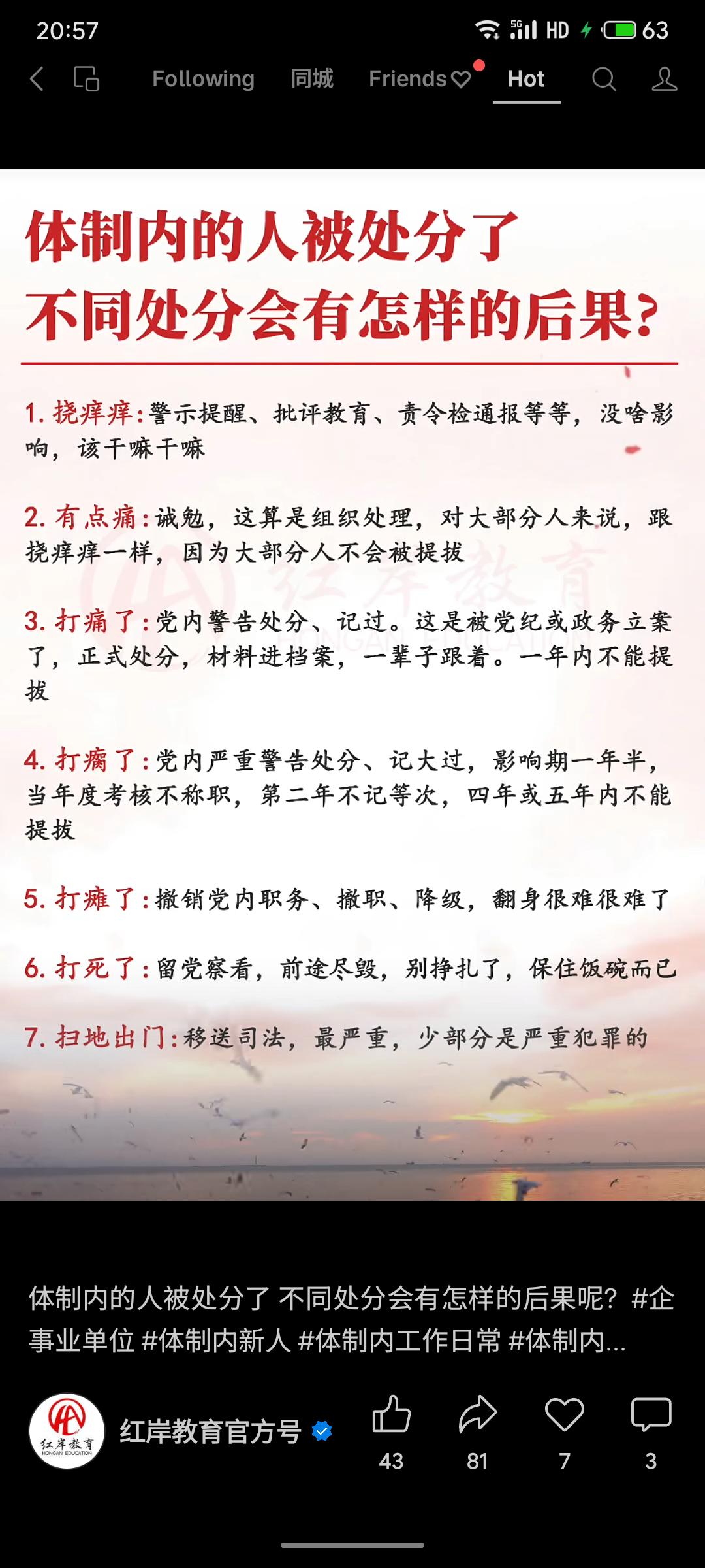 体制内处分后果因轻重而异:轻者如批评教育几无影响;诫勉、警告等会限制提拔;严重警告影响考核晋升;撤职降级则翻身困难;留党察看前途尽毁;最重者移送司法,工作不保。处分等级直接关联职业前景。