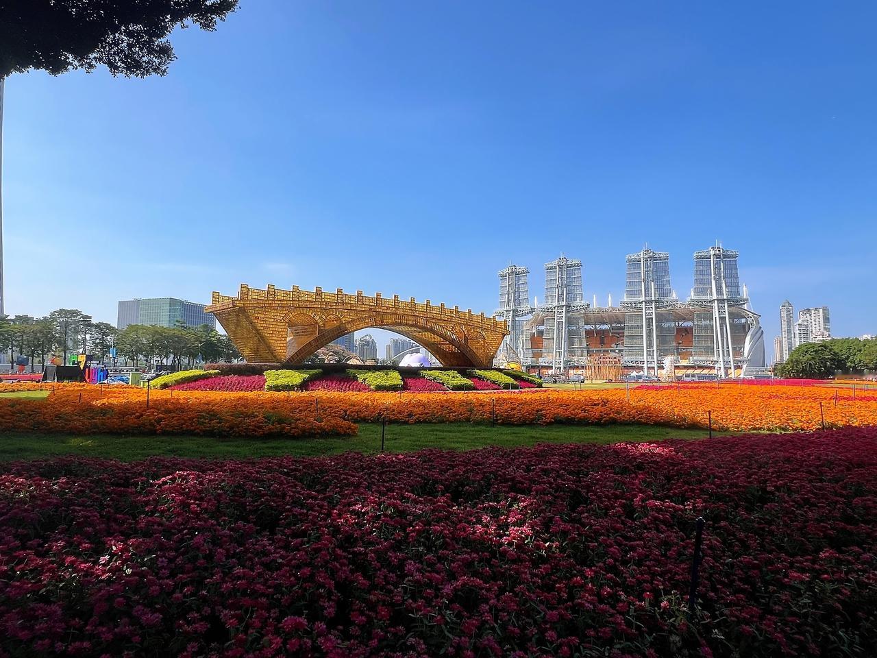 2025年11月9日,我们乘坐地铁,顺着📍海心沙逛到江边公园,实实在在被这片花景惊艳到了——没有“随手拍都是大片”的夸张,但每一处都舒服得刚好。 先是珠江边那对🐬全运会吉祥物“喜洋洋”“乐融融”,白色和粉色的小家伙衬着广州塔超吸睛,它们是以中华白海豚为原型设计的,萌趣十足;进了公园,绿茸茸的🧸草雕抱着洒水壶,周围粉花黄花挨得密密的,阳光落在花瓣上,连普通手机拍出来都暖乎乎的;👑凤冠花艺拱门是真的精致,红蓝白的配色裹着鲜花,挤在人群里等几秒空位,就能拍出带着岭南味的温柔;还有那片🌼橙红花田,金色拱桥往花海里一搭,远处高楼衬着,站在花径里随便站站,都是“城市裹着花”的好看。 沿着花径慢慢逛,身边是来来往往的人群,耳边是轻声的赞叹,脚下是松软的步道,被满眼的鲜花和清新空气包围着,哪怕人多也不觉得拥挤,只觉得惬意又治愈。 真心建议同来的朋友多份自觉:✅不越围栏踩花田,✅不碰花艺装置,✅拍照有序等一等,✅垃圾随手收进袋里。这份免费的城市温柔,需要大家一起守护,才能让更多人都能好好感受这份美好呀!