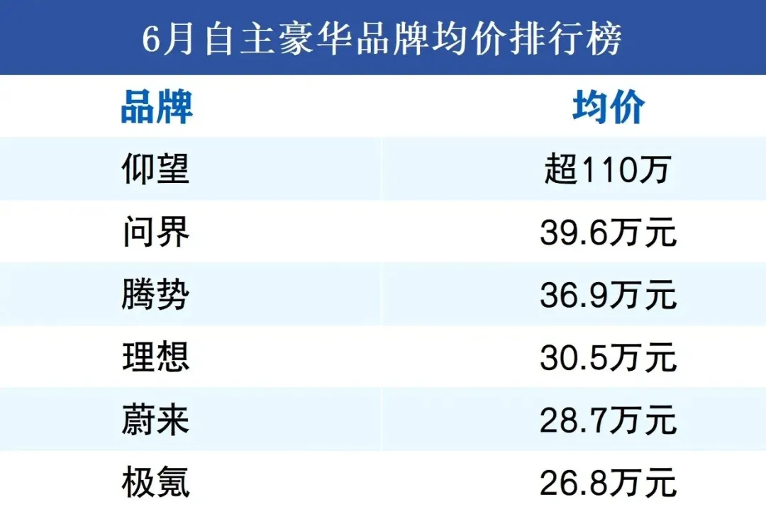 比均价,理想汽车的6月份成交均价是30.5万元,比奥迪的28万元更高,和宝马汽车的32万元很接近。