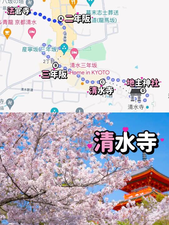 🌈赏樱路线:法观寺-二年坂-三年坂-清水寺-地主神社