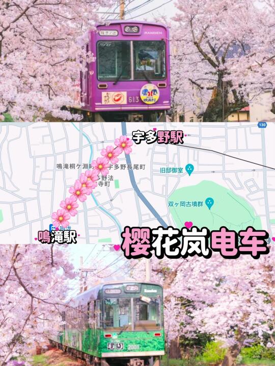 一定要乘坐从鳴滝駅到宇多野駅这段的电车,两侧的樱花驶过眼前,太美妙了