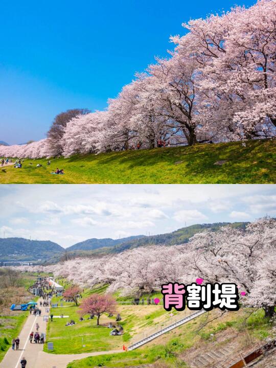 是京都府八幡市桂川河旁边的防护堤,种植了约250株樱花