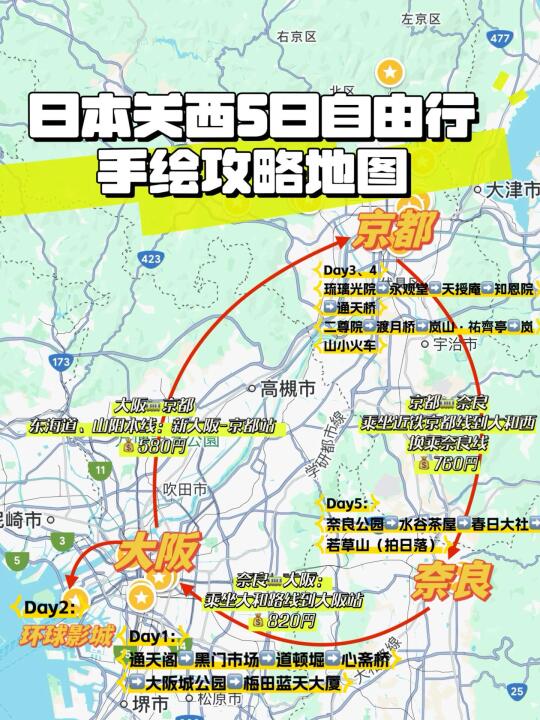 一篇笔记带你玩转京都樱花季,我是利用年假环球旅行69国的发光体!这篇笔记通过手绘地图方式,带你玩转京都!