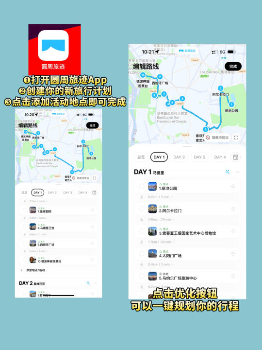 如果你想自己diy马德里或者其他目的地线路,推荐一个好用的App【圆周旅迹】