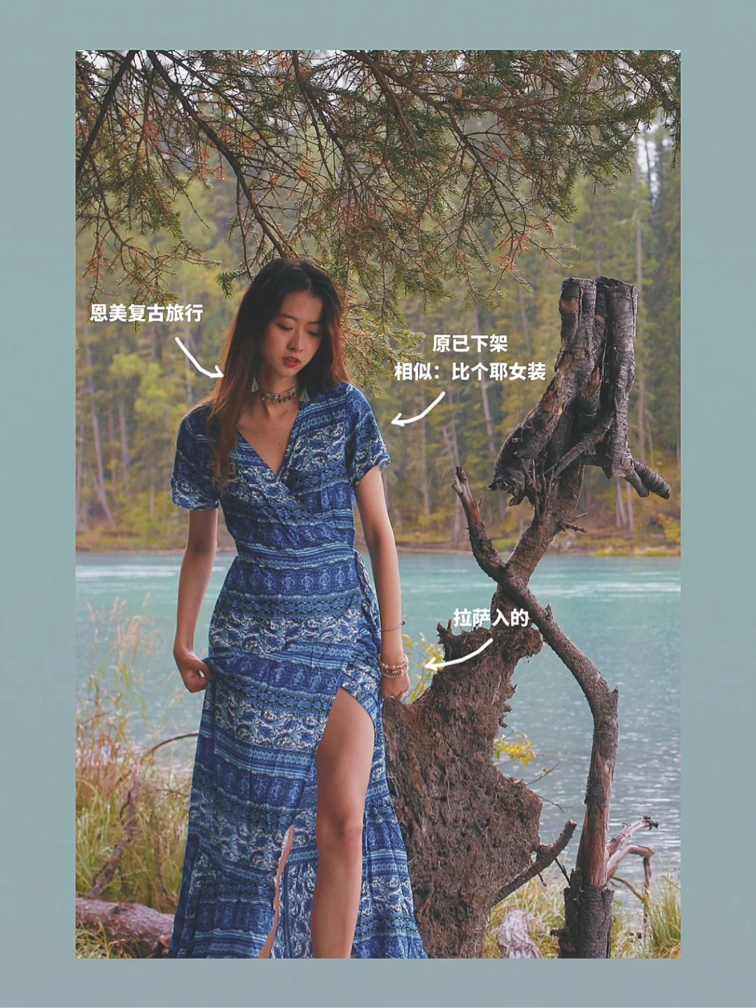 1⃣️根据目的地背景色选衣服,选跟背景色元素同色系的或者是浅色的一定没错!!(比如去赛里木湖等湖泊,背景还有森林,那选择绿色或者蓝色系的都可以!