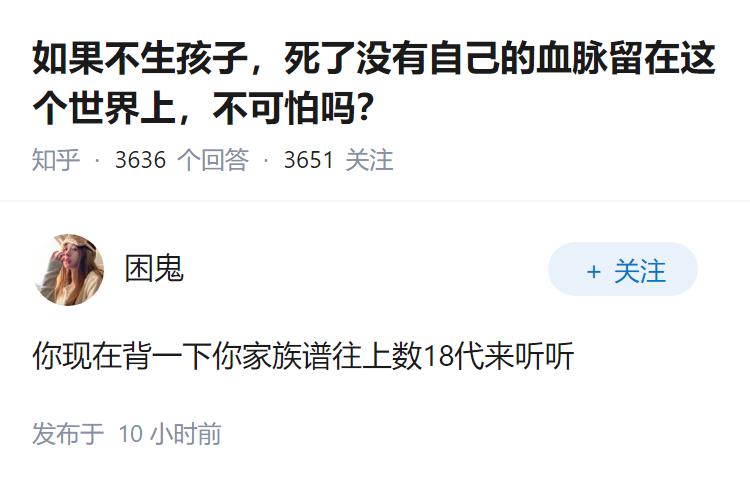 如果不生孩子,死了没有自己的血脉留在这个世界上,不可怕吗?