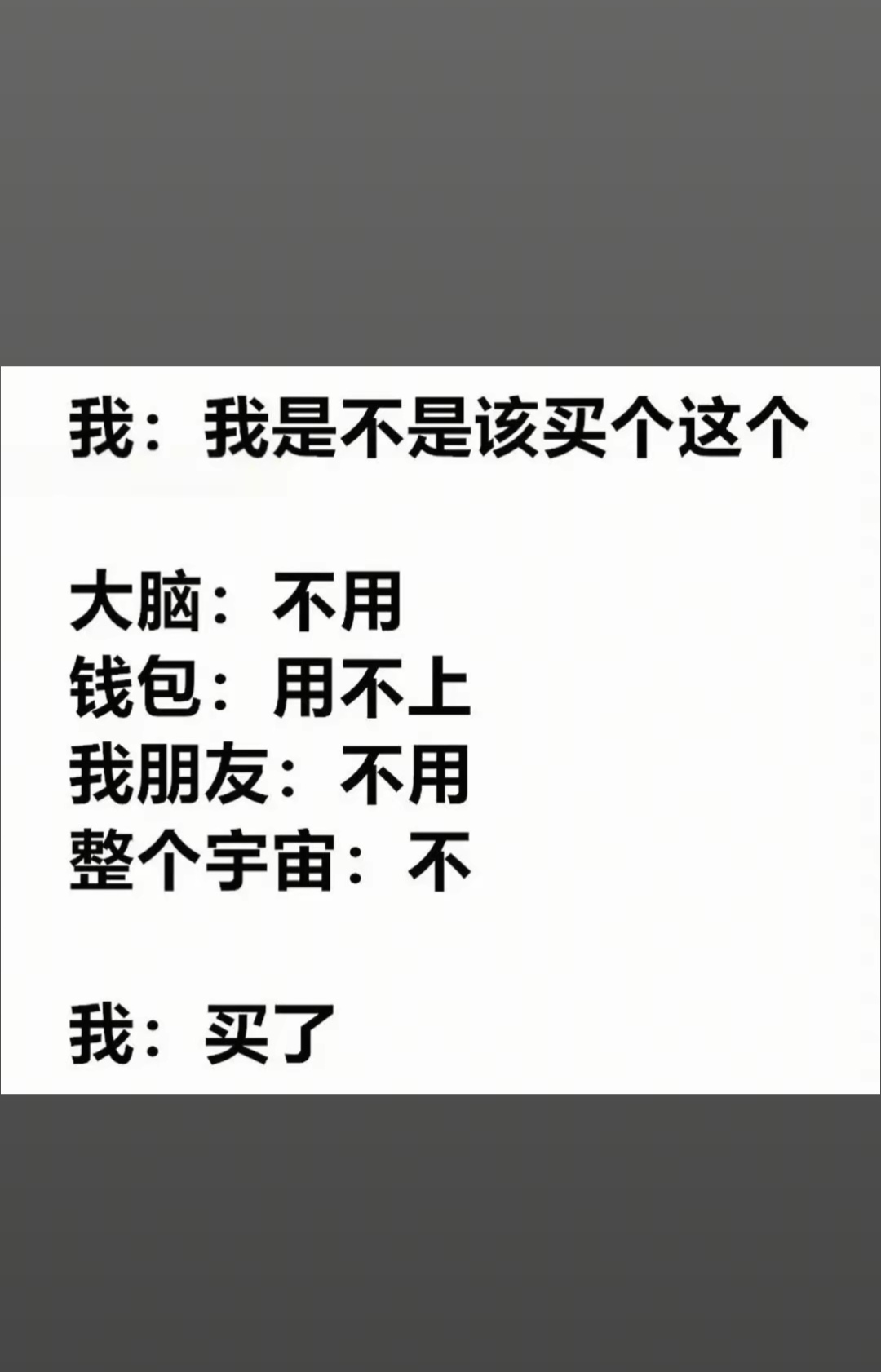 大脑:不用 钱包:用不上 我朋友:不用 整个宇宙:不 我:买了