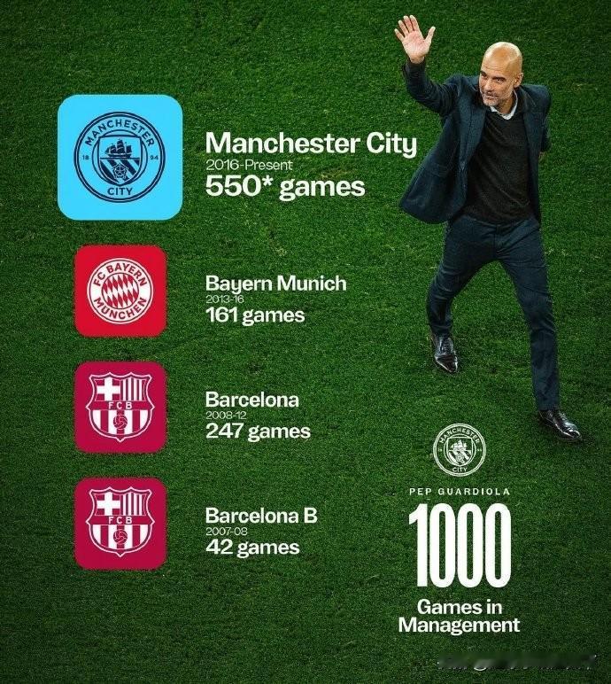 是巧合吗?本轮英超,西甲,德甲的头名都平球了。更巧合的是这三支球队的教练都是瓜迪奥拉的弟子。 真的有种教会徒弟饿死师傅的感觉。不过现在的瓜迪奥拉也学聪明了,居然会学塔子踢防反了。说明瓜也开始务实了。 最后还是恭喜瓜帅完成了1000场里程碑的记录吧。虽然开的都是航母,但超过7成的胜率不是一般的高啊,要不是曼城上赛季因为缺人有段时间拉跨,胜率可能会更高。