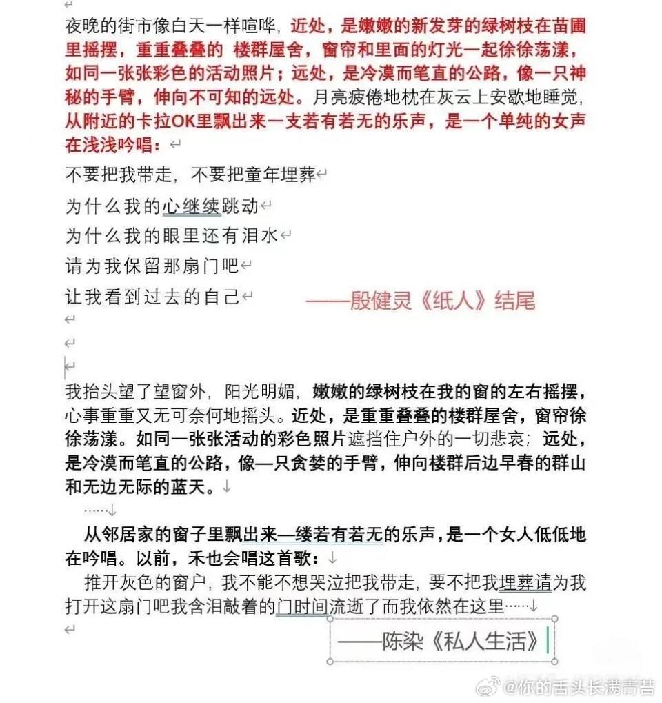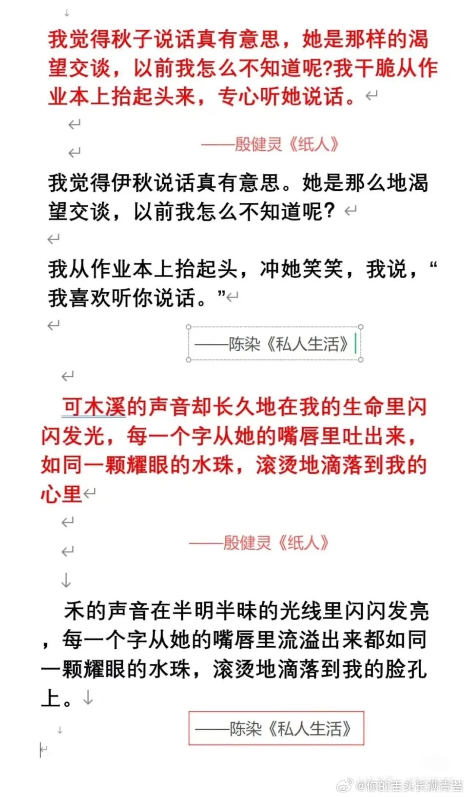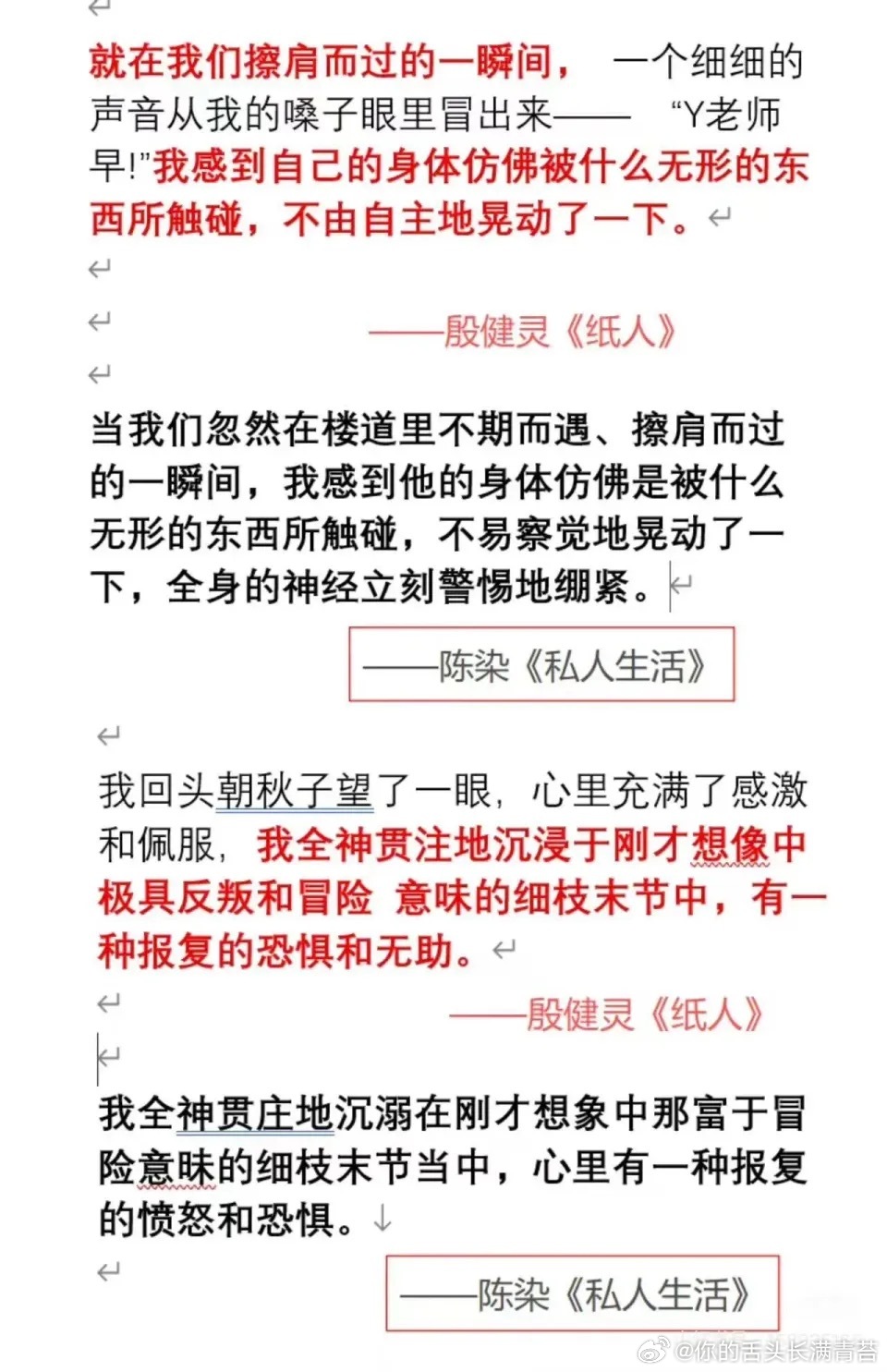 殷健灵长篇小说《纸人》,经初步查证,几乎成段照抄的部分有数十处,被抄袭者包括陈染、村上春树和肯尼斯•格雷厄姆。
