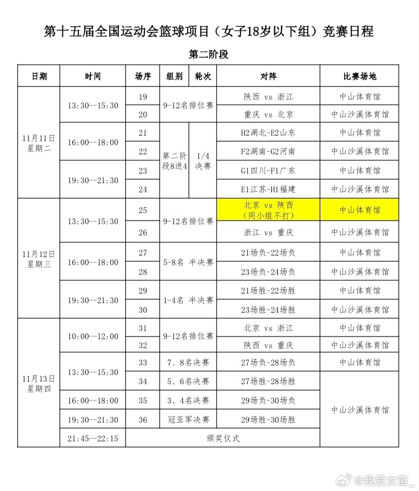 【全运会U18女篮八强对阵出炉:山东&湖南同处下半区】十五运U18女篮八强战对阵抽签仪式今晚进行,最终广东和江苏同处上半区,山东和湖南被分在下半区。1/4决赛对阵及时间: