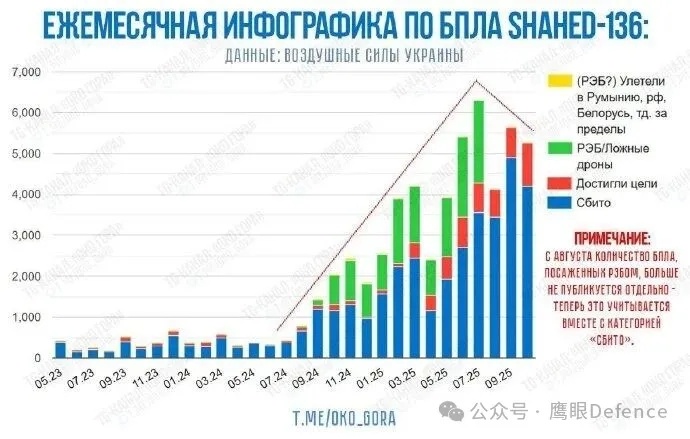 统计显示,俄军在10月份总计向乌克兰发射了5265架自杀式无人机,平均每天发射170架,乌克兰防空部队拦截率为79.7%;最重要的是,分析师指出,俄军发射自杀式无人机的速度与俄罗斯的生产能力相符,意味着俄罗斯并没有明显囤积自杀式无人机。