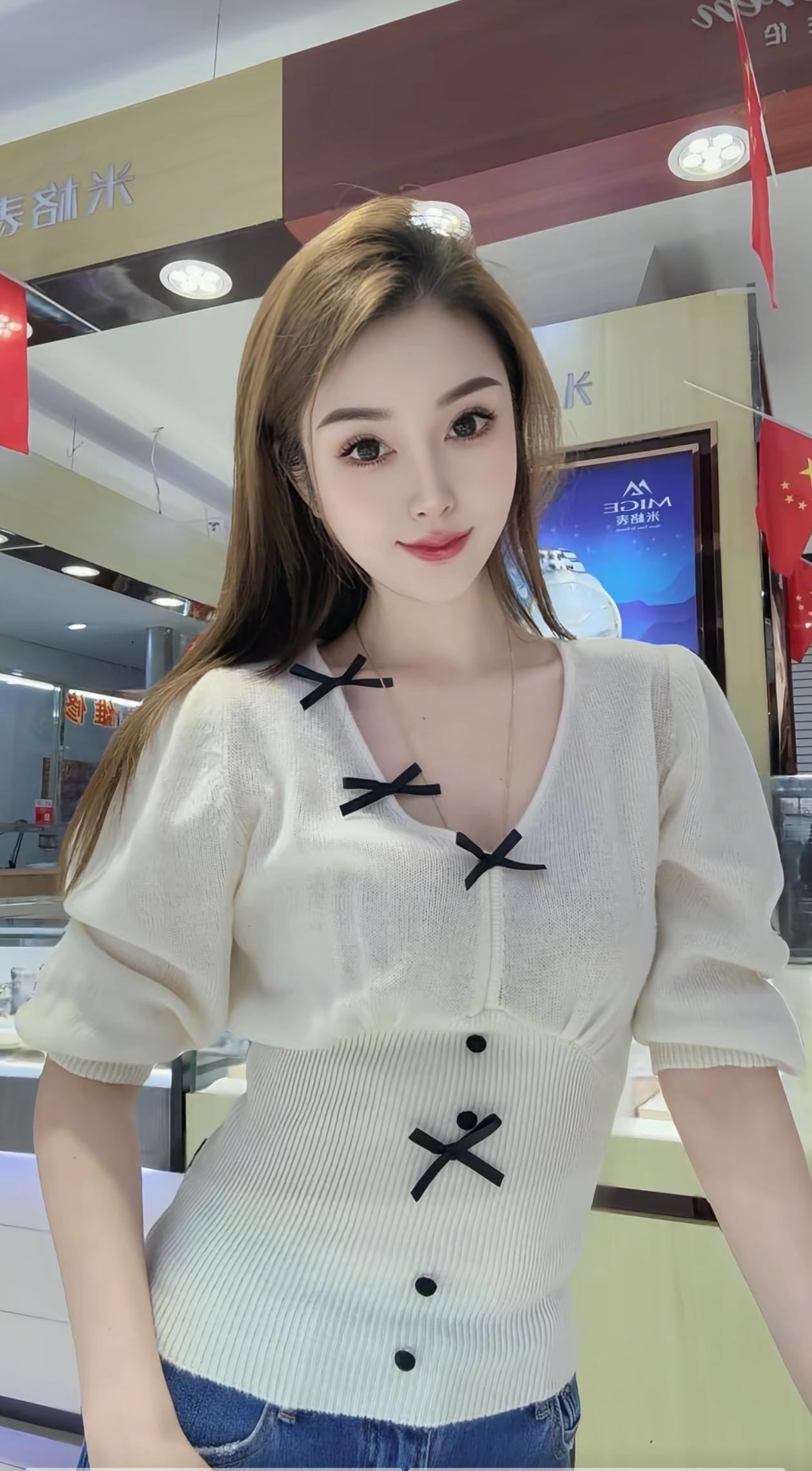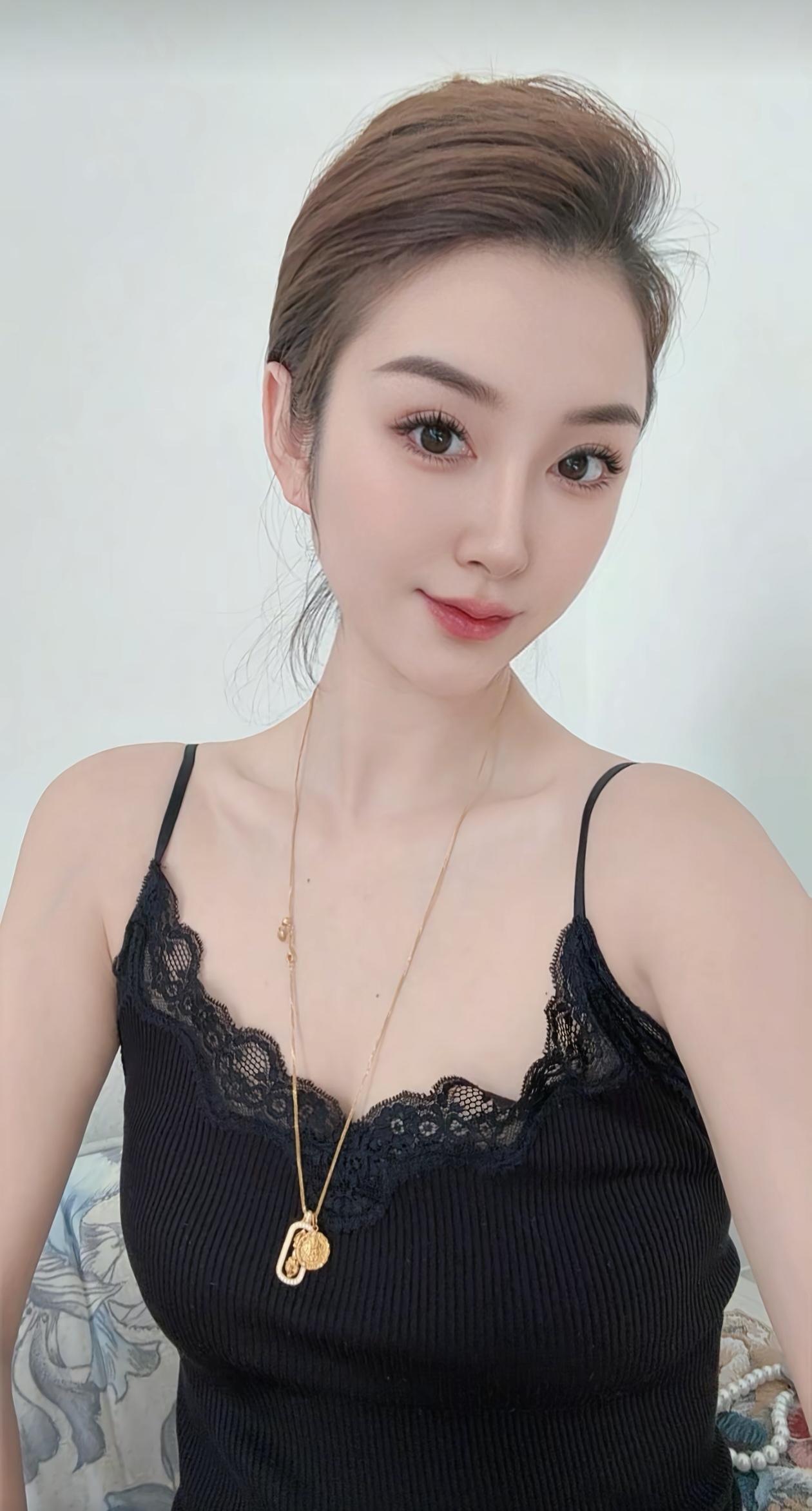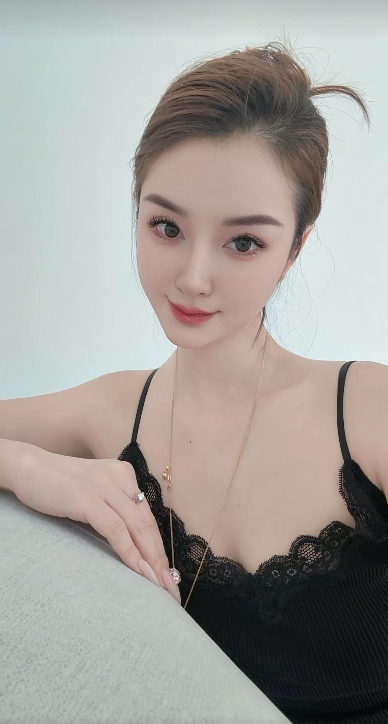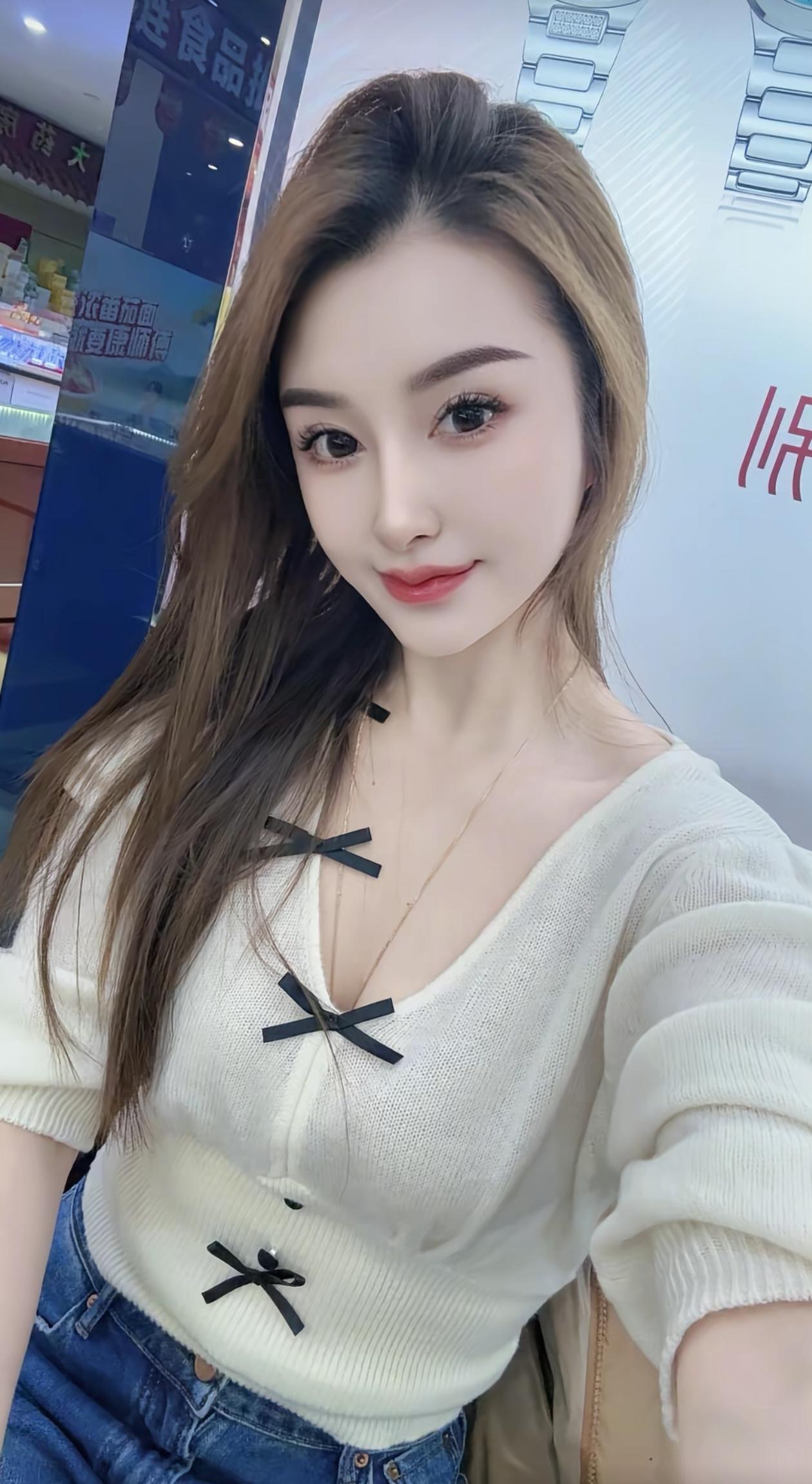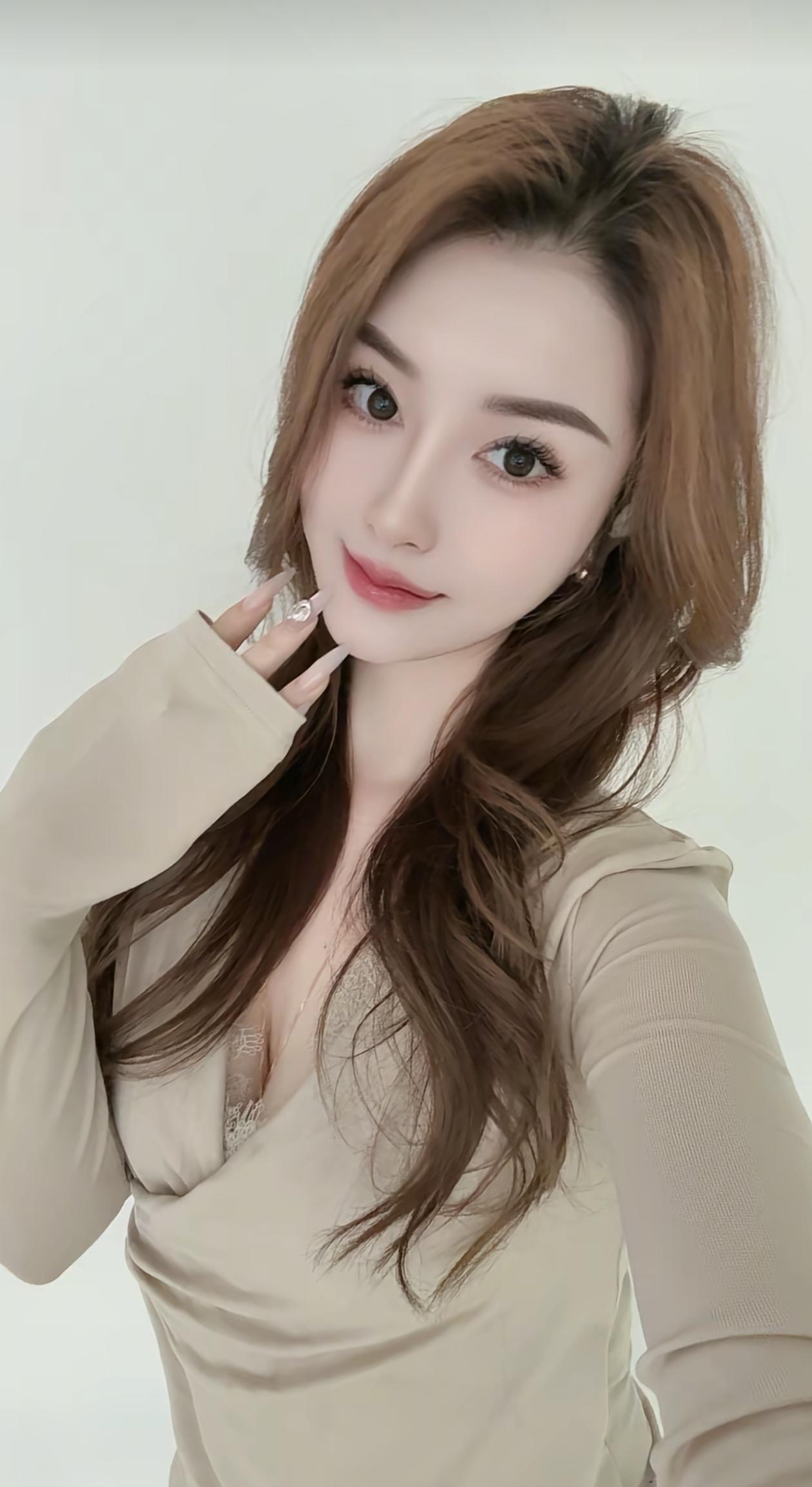 温柔甜美的自拍,浅棕色长发,微笑动人