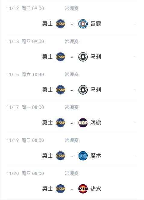 魔鬼赛程来袭!勇士未来9天6连客,2次4天3赛! 第一个4天3赛:雷霆、马刺(背靠背)、马刺 第二个4天3赛:鹈鹕、魔术、热火(背靠背) 好消息是库里的感冒好了,下一场对阵雷霆就可以回归,霍福德的手感也复苏了,状态不错。 坏消息是刚回归就是连续打强队,且上来就是背靠背,要看看科尔让不让库里打马刺的时候休息一场。 这个6连客,最难啃的就是前三场,勇士赛季至今还没有和雷霆、马刺交过手,尤其是全新版本的马刺和全新版本的文班亚马,这个遭遇战回非常难打。