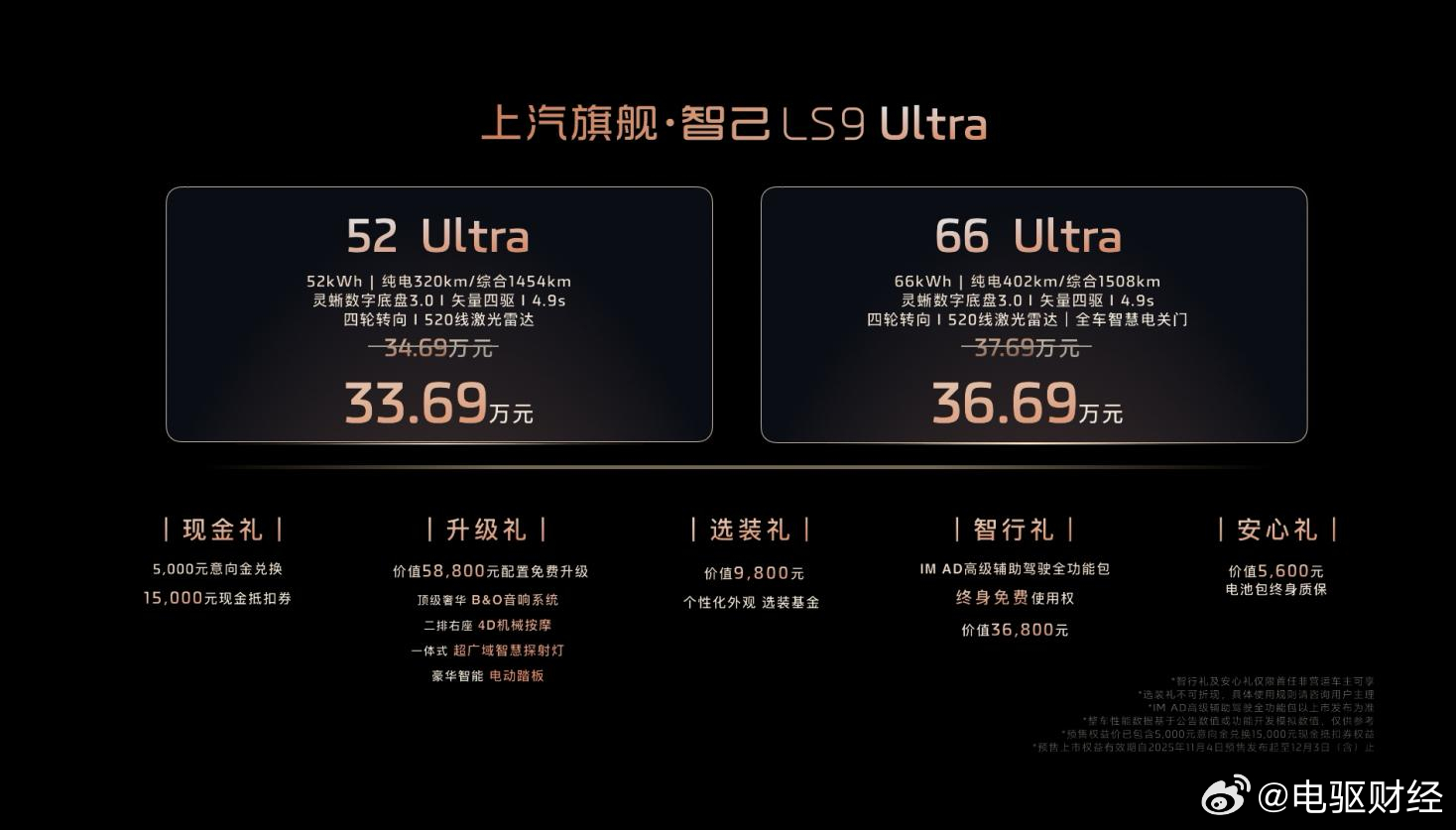 11月4日,上汽旗舰·智己LS9全球首发并正式开启预售。新车重磅首发两个超级增程版本,全系皆Ultra:52 Ultra版,预售权益价33.69万元;66 Ultra版,预售权益价36.69万元。作为汇聚上汽集团70年造车底蕴,集全球顶尖技术打造的旗舰之作,智己LS9以“两大跨代际硬核科技+两大智能时代最强创新”的绝对实力,一举颠覆30万级大六座SUV市场格局,正式宣告9系新王诞生!