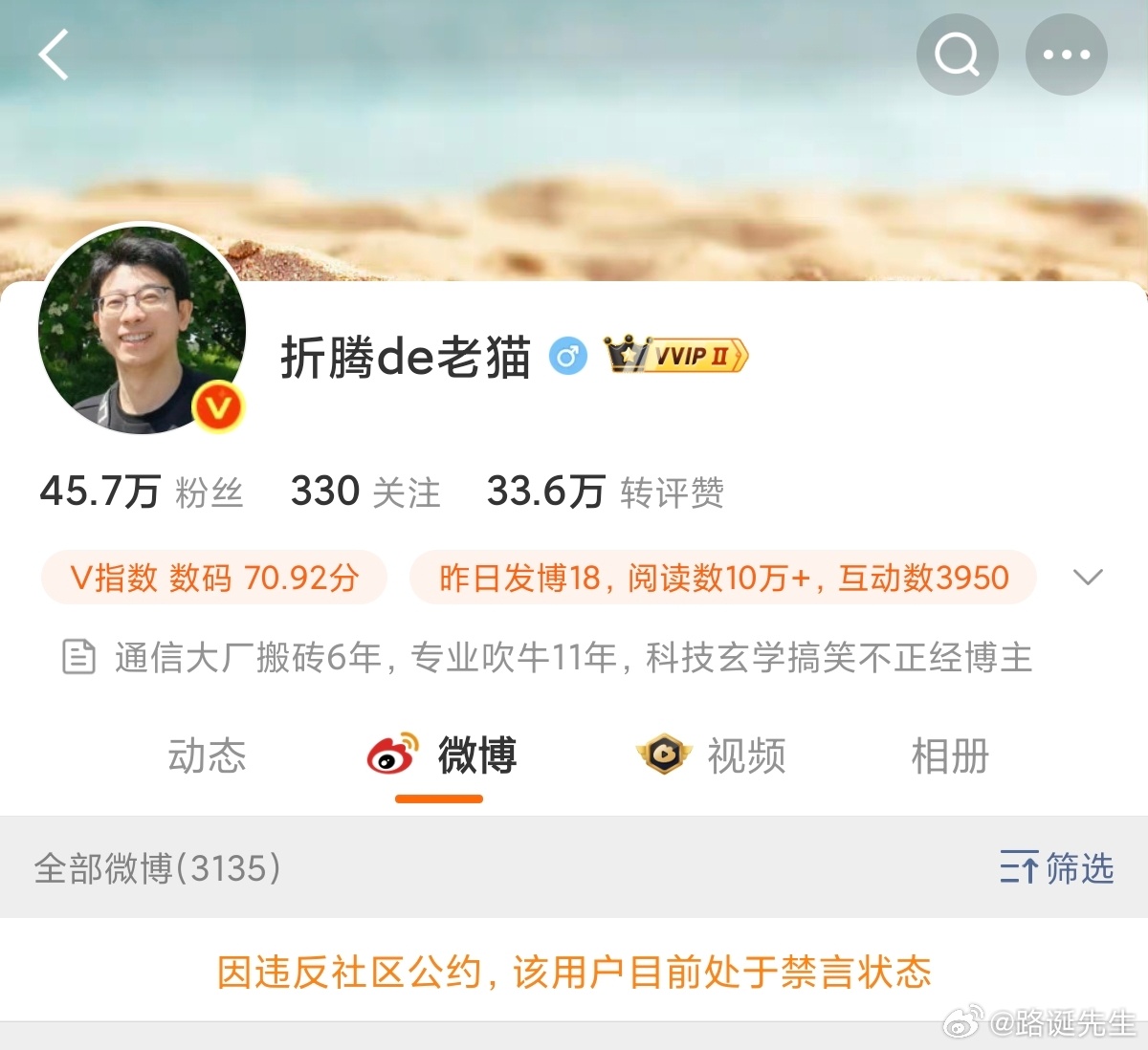 微博著名大V“折腾de老猫”再次被禁言。