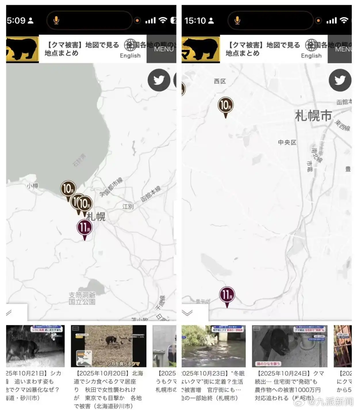 #亲历者谈日本熊害#【#日本熊害已致13死在日华人发声#:不要落单,凌晨傍晚不去山林】近期,日本熊害问题持续发酵。据央视新闻消息,11月9日,日本秋田县五城目町和美乡町相继发生熊袭击人事件,共造成3人受伤。针对熊害问题,联系到在日华人汤先生,他在2020年熊害时曾自驾环游日本。其表示,自己每一年都会高频度在日本山区自驾,有多次遇见熊的经历,但唯一一次处于危险中是今年九月份,深夜在大阪郊区抽烟时把熊吸引过来。“我这是完全错误的行为。”其表示,最近有很多人表示哪里都不敢去,“一问都是大众城市大众景区,我认为没必要过度焦虑。不要落单、不要凌晨傍晚去山林,见不到熊就是最大的自保措施。”