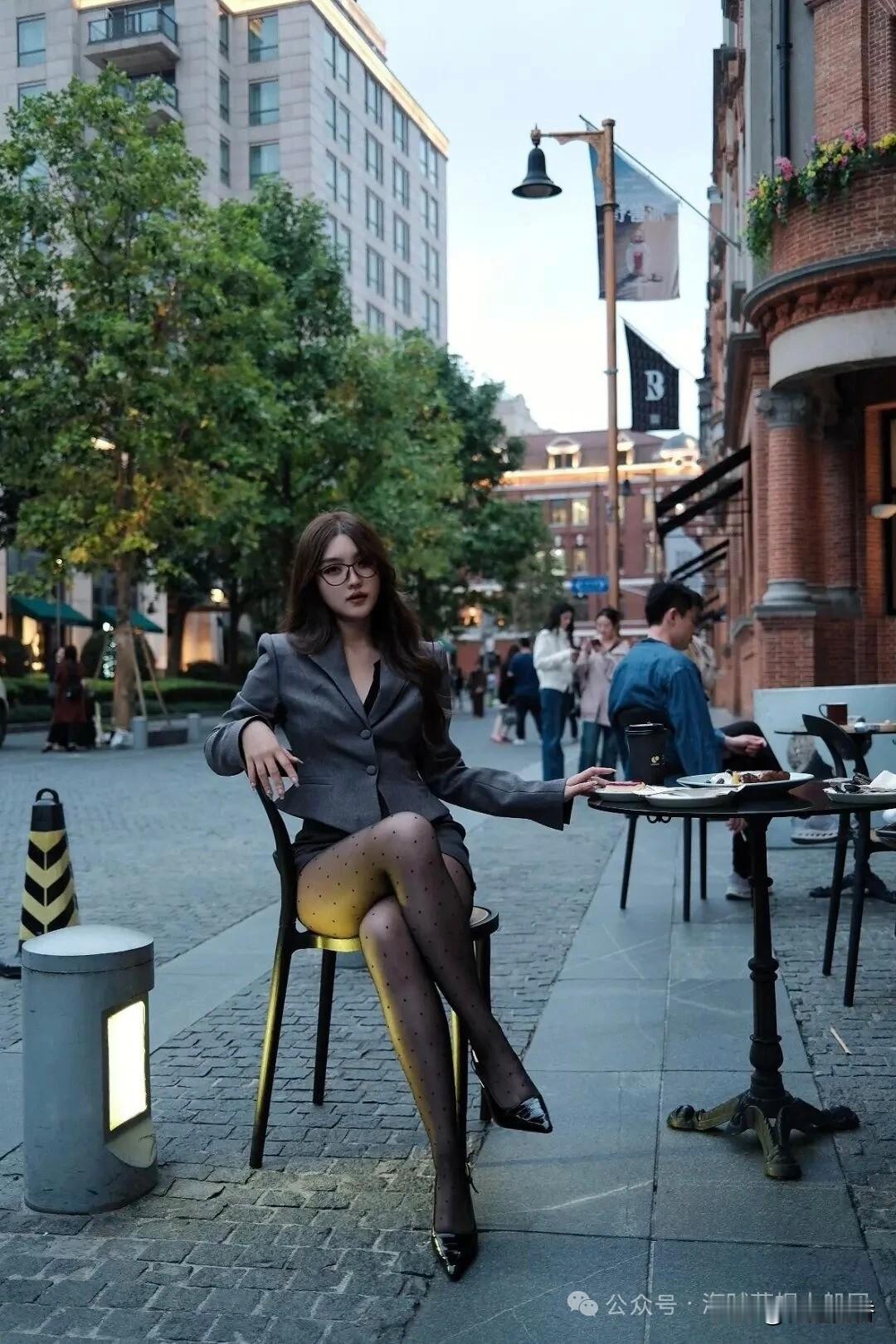 都市街头的优雅瞬间,时尚穿搭与古典建筑的完美融合。