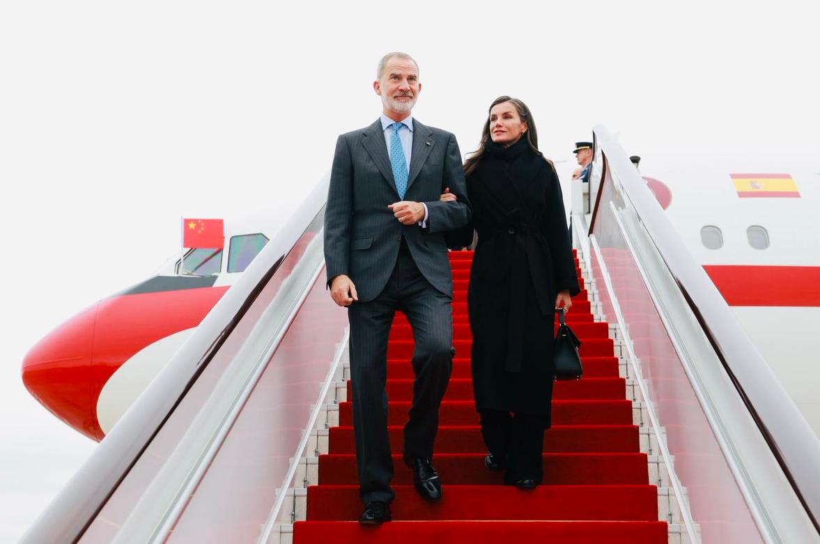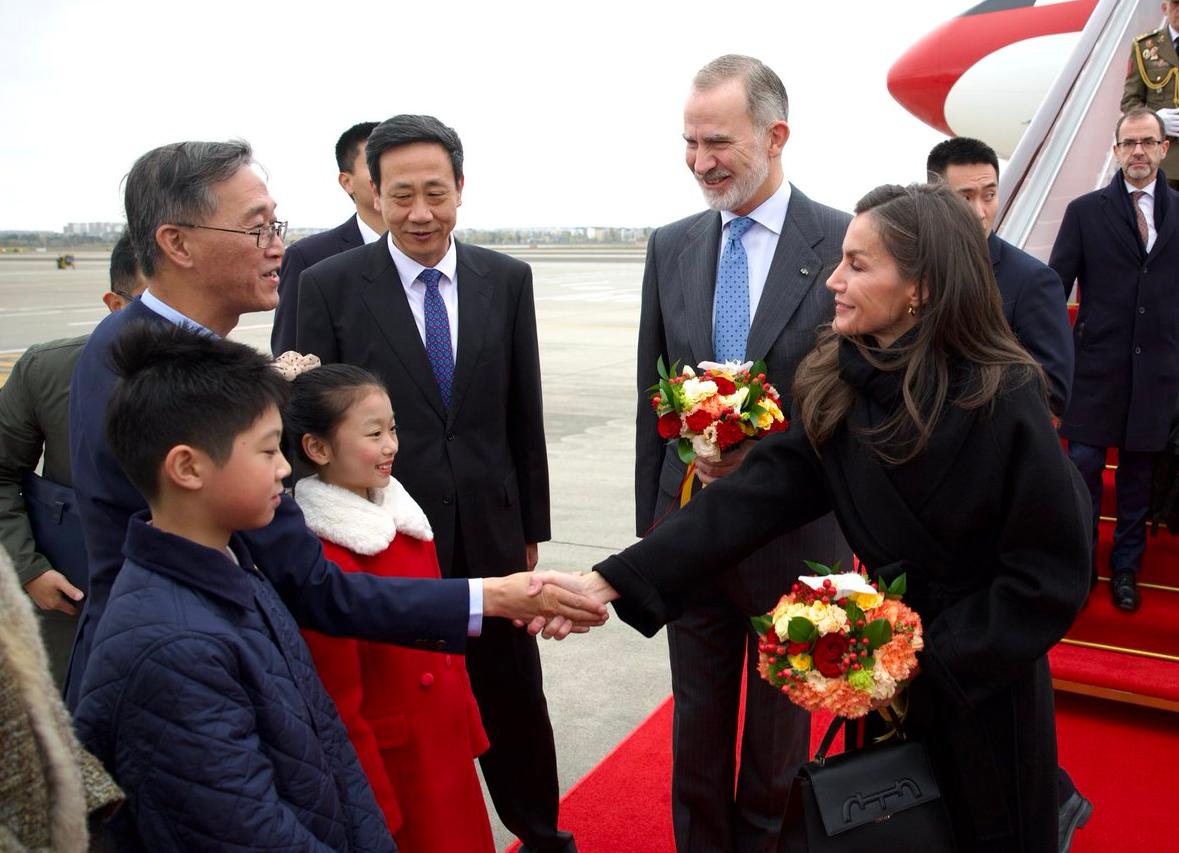 马德里当地时间11月9日,西班牙国王菲利普六世和王后莱蒂齐亚在马德里出发前往我国 由于时间的关系,北京时间今天下午,他们已经落地成都双流机场。他们对我国的国事访问明天在成都正式开始 11号夜间他们就会前往北京,12号是正式的欢迎仪式和国宴,13号就走了,行程看着十分紧凑 坐大半天的飞机,莱蒂齐亚穿的一身黑以舒适为主吧。搜了下天气,成都今天下午好像十来度的样子,这种大衣+长裤的装扮应该也是合适的 正式访问开始后大家应该能在官媒看到他们啦