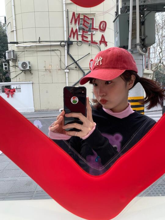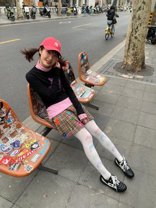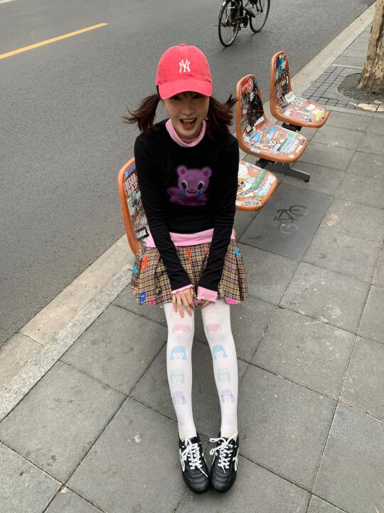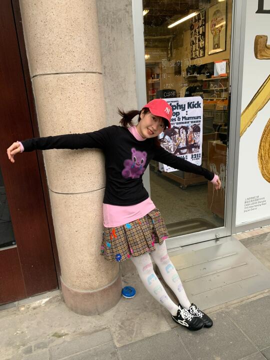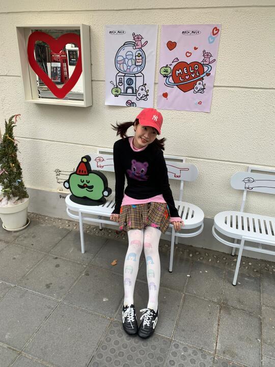 今天的ootd感觉回到了我以前的风格 五颜六色的! 戴着MLB的粉色帽子格外亮眼!