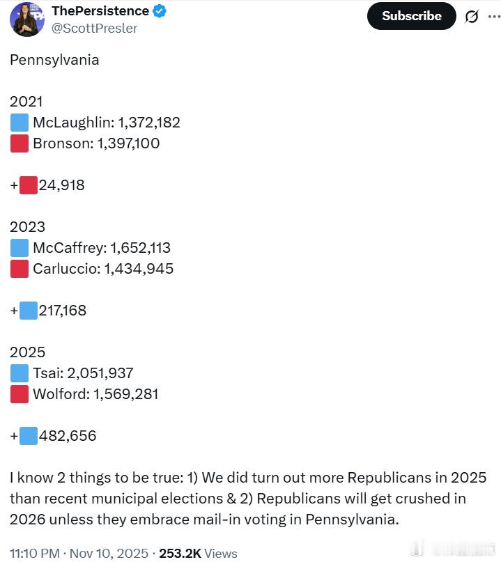 2) 除非共和党人在宾夕法尼亚州接受邮寄投票,否则将在2026年被彻底击败。