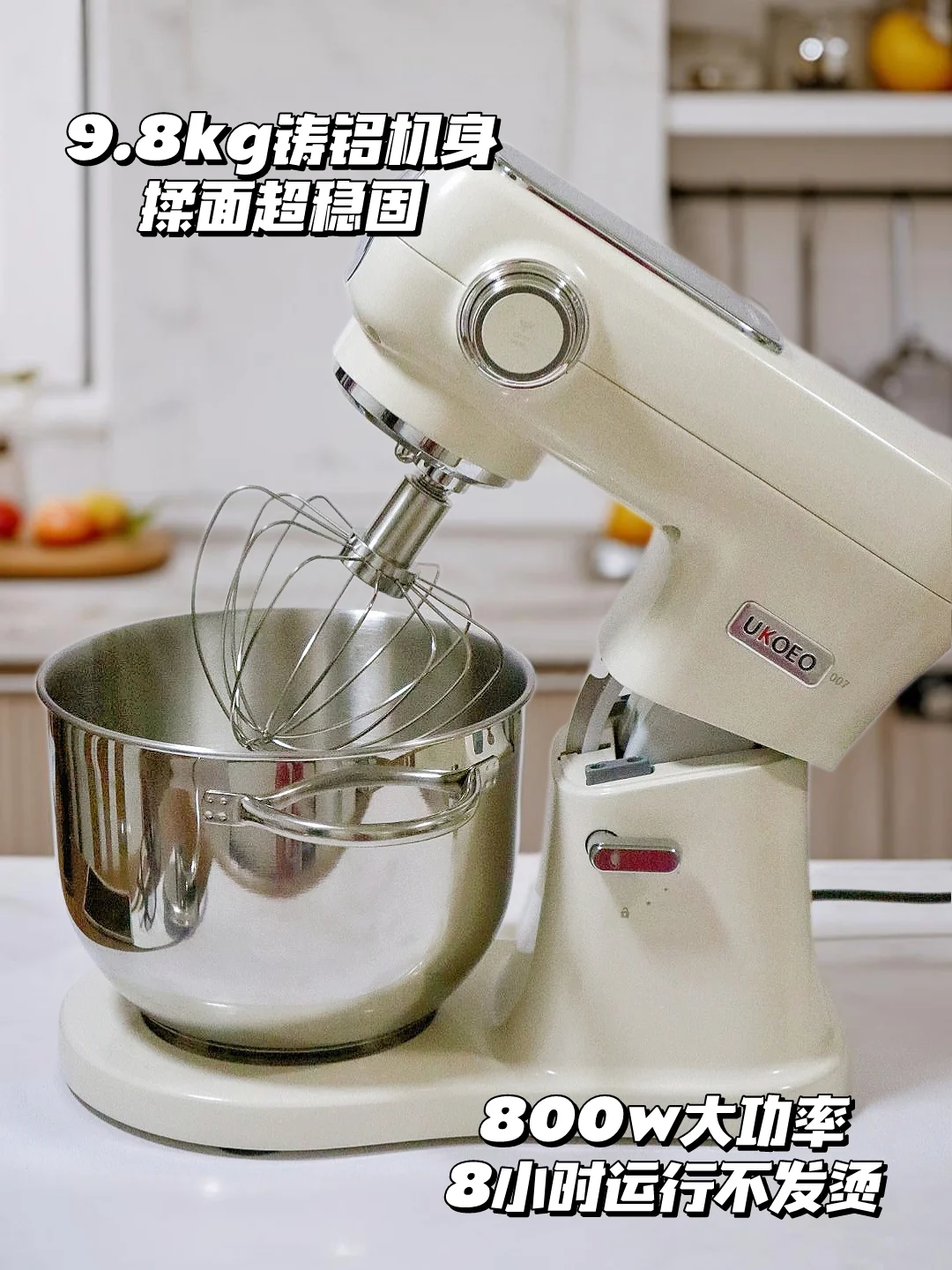 9.8kg的加厚铸铝金属机身搭配加大底座,开到最高档也不晃,稳得像焊在台面上。🔕运行时静音到离谱,就算深夜想做蛋糕,也不怕吵到家人和邻居。800w大功率,连续运行8小时不发烫,这稳定性绝了。👍🏻👍🏻