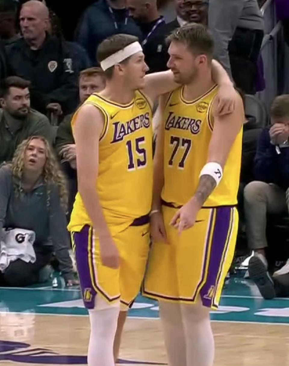 湖人双子星的关系还非常好! 东契奇可以场均30分三双表现。 里夫斯上赛季就场均20分,本赛季再差也有25分再加8次助攻。 这两人还能互相配合,一个东契奇26岁,一个里夫斯27岁,湖人未来几年的核心。 科比是1978年出生,他俩是科比2004年的年纪呀,所以总冠军肯定是会有的。[得意]