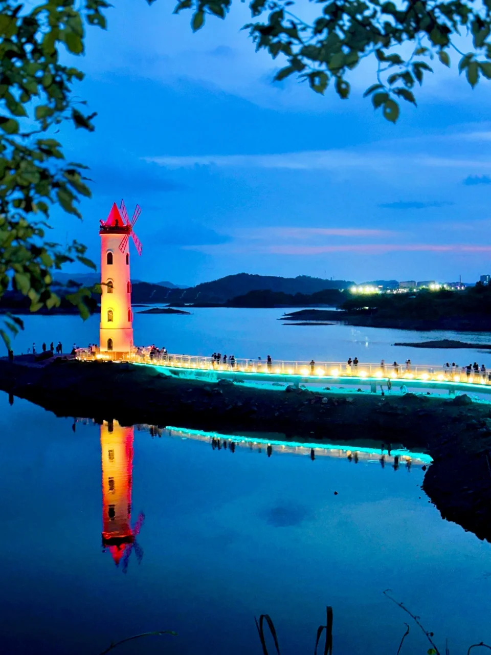 🌟亮点:白色灯塔伫立湖边,背后是湛蓝湖水和天空,怎么拍都出片,尤其日落时分,光影超绝!