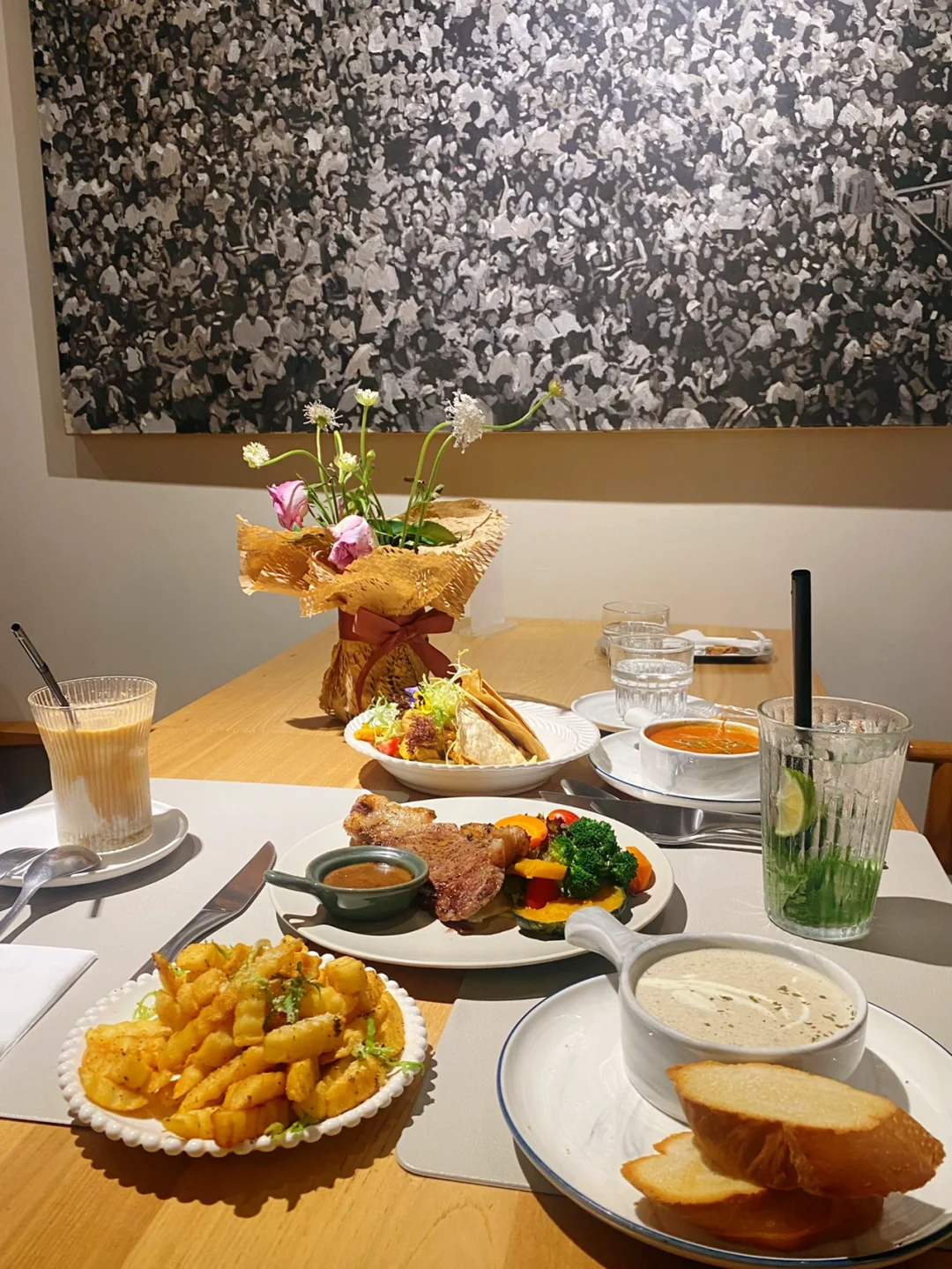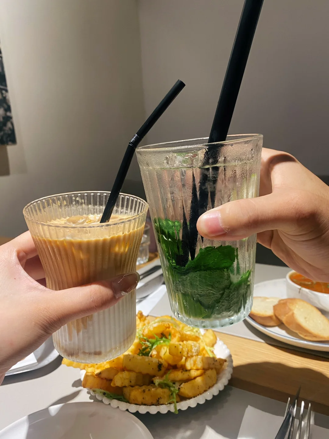 (说实话,这真的是我喝过最好喝的气泡水!)气泡水里面有薄荷、根本没有刺鼻的气泡!搭配牛排非常解腻~
