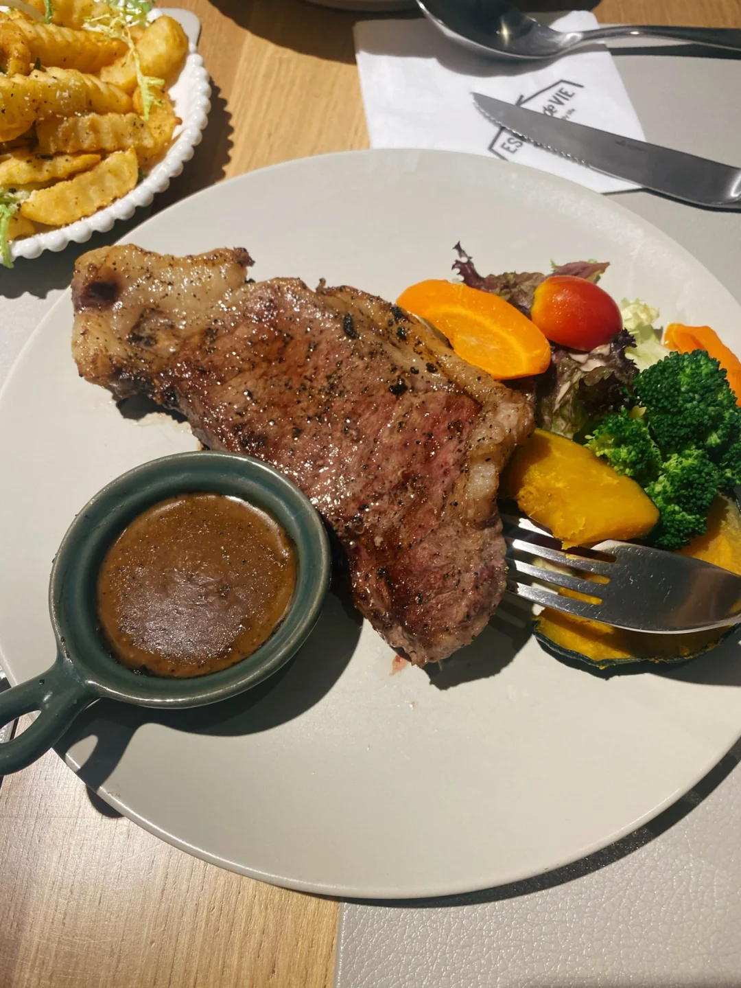 牛排做的很入味,我们选的7分熟!搭配沙拉吃真的很好吃!