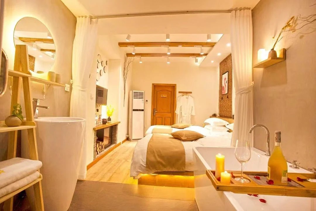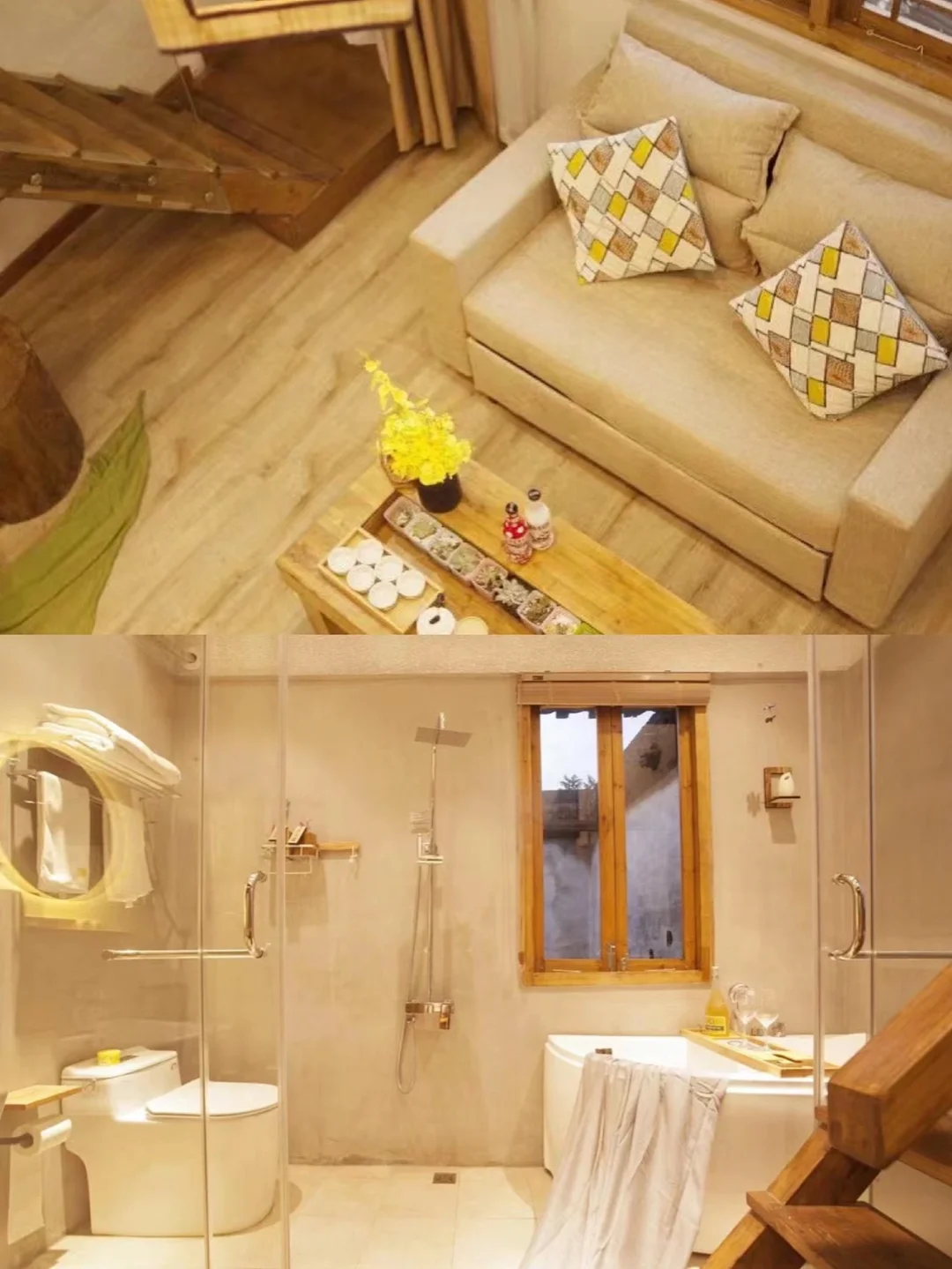 4⃣️我和闺蜜订的是是屋顶带有天窗的复式房间,重要的是他家每个房间都有浴缸🛀,真的不要太惬意